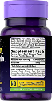 | nameOriginal | Carlyle Melatonin 12 mg Fast Dissolve Non-GMO and Gluten-Free Tablets – 90 |
