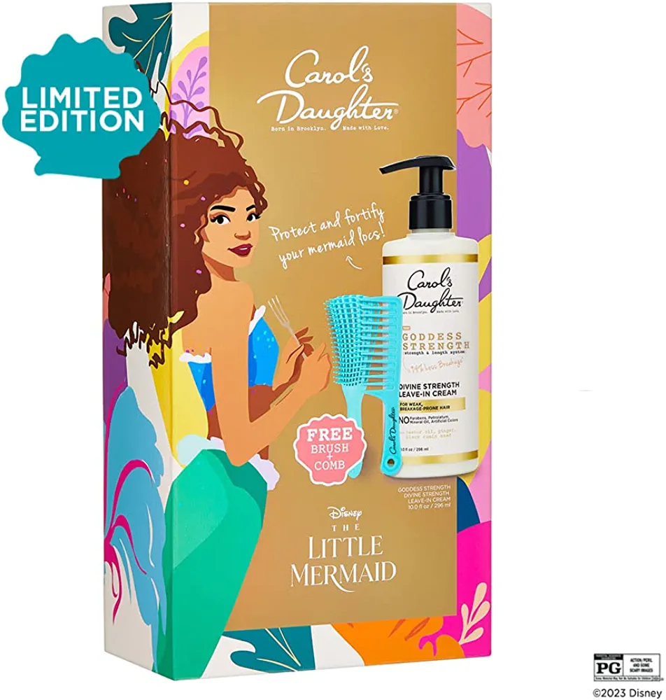 Carol’s Daughter and Disney’s The Little Mermaid Hair Care Gift Set for Curly Hair, Includes Goddess Strength Leave In Conditioner, Kid’s Brush and Comb, 10 Fl Oz