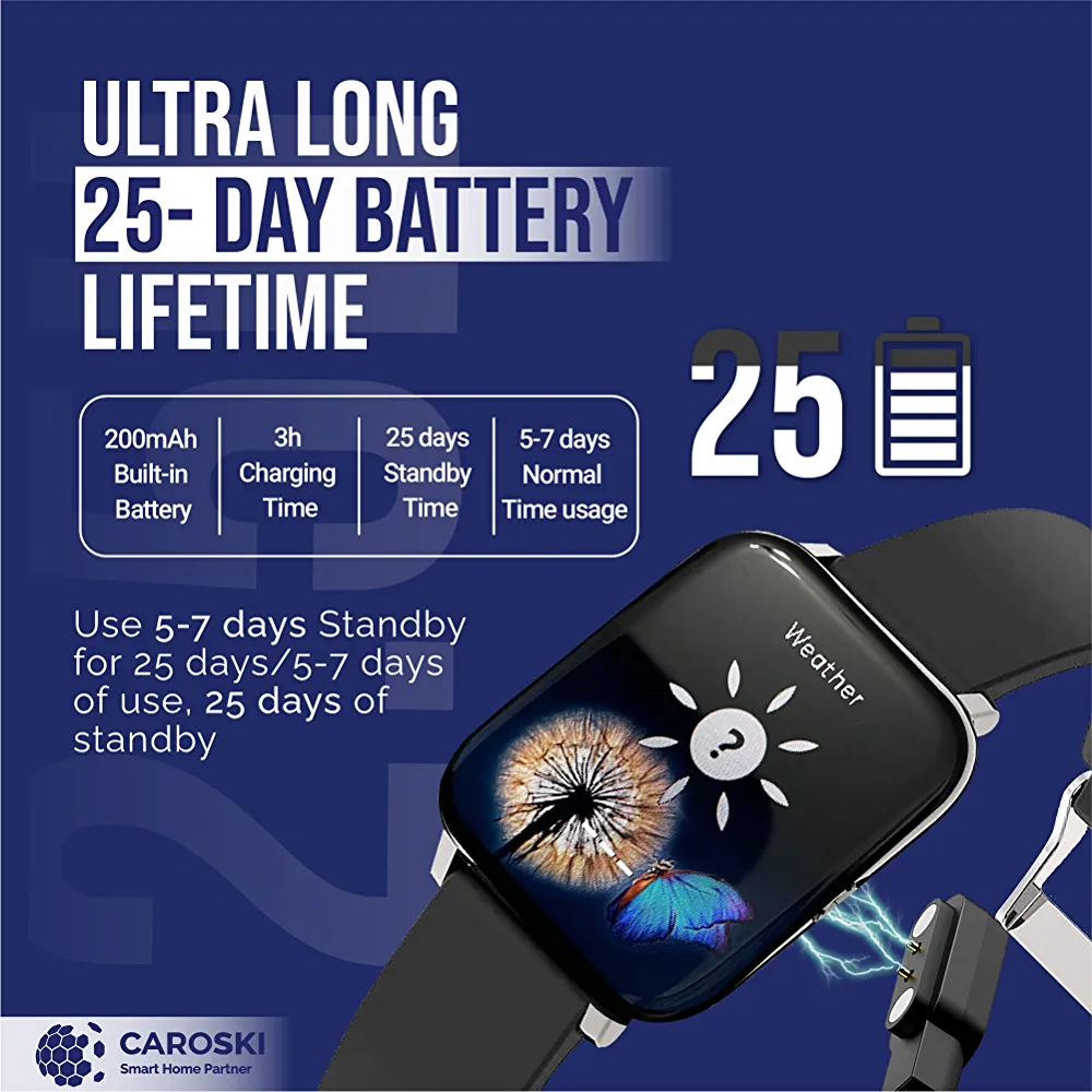The CAROSKI Smart Watch is equipped with advanced sensors that monitor your blood oxygen levels and heart rate, providing you with real-time data to help you make informed decisions about your health. Whether you’re a fitness enthusiast or just looking to improve your overall health, this smart watch is the perfect companion for you.