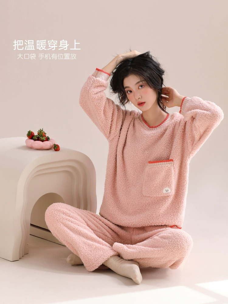 | nameOriginal | Carrefen women's pajamas winter women's autumn and winter flannel plus velvet thickened coral velvet home clothes winter |