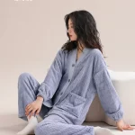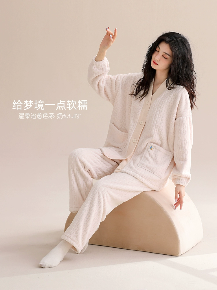 Carrefen women’s pajamas winter women’s autumn and winter flannel plus velvet thickened coral velvet home clothes winter
