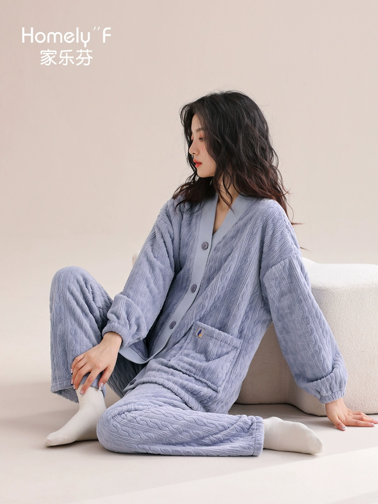 Carrefen women's pajamas winter women's autumn and winter flannel plus velvet thickened coral velvet home clothes winter