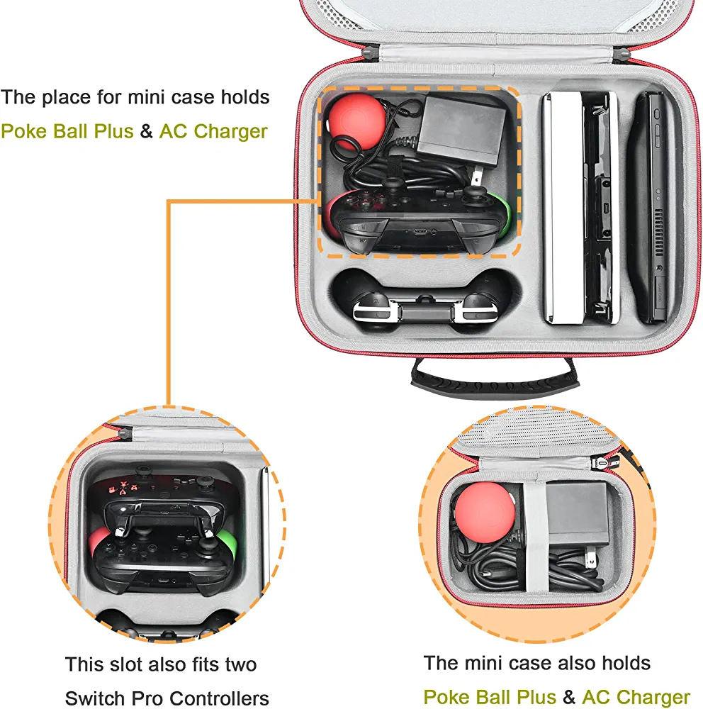 The case is designed to fit your Nintendo Switch (OLED Model) or Nintendo Switch with Extended Battery Life (Neon Blue/Neon Red) perfectly, with a custom cutout that allows you to access all of the device’s buttons, ports, and features without having to remove it from the case. The case also features a convenient carrying handle that makes it easy to take your device with you wherever you go.