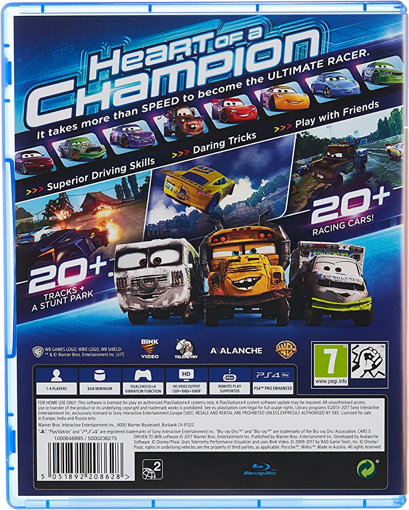 The PS4 CARS 3 (R2) ENG (PS4) is an exciting video game that brings the world of Disney Pixar’s Cars 3 to life on your PlayStation 4 console. This game is designed to provide an immersive experience for players of all ages, allowing them to race against their friends and family in high-speed, action-packed competitions. With stunning graphics and realistic physics, you’ll feel like you’re really behind the wheel of Lightning McQueen and other beloved characters from the Cars franchise. The game is in English and is compatible with R2 regions, making it a great choice for gamers in Europe, the Middle East, and Africa. Whether you’re a fan of the Cars movies or just love racing games, the PS4 CARS 3 (R2) ENG (PS4) is sure to provide hours of entertainment and excitement.