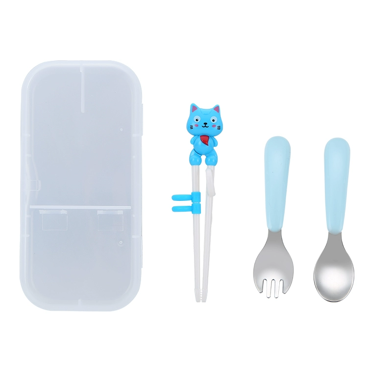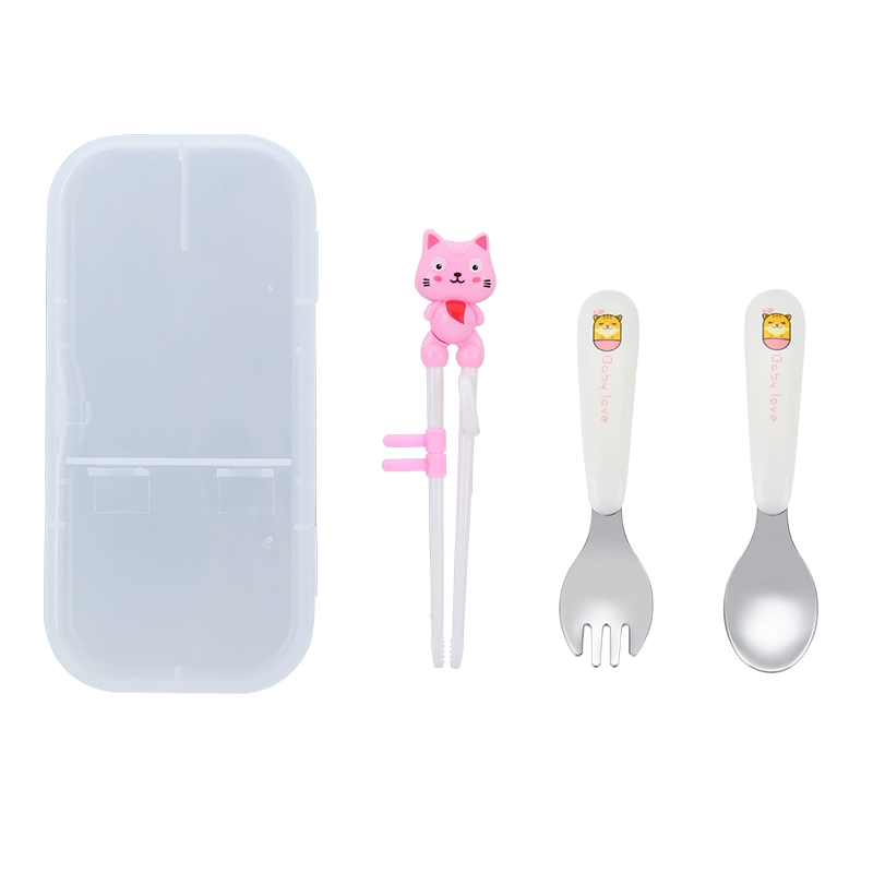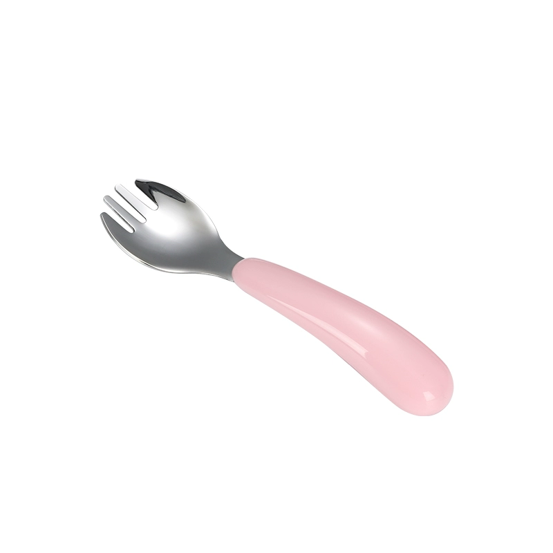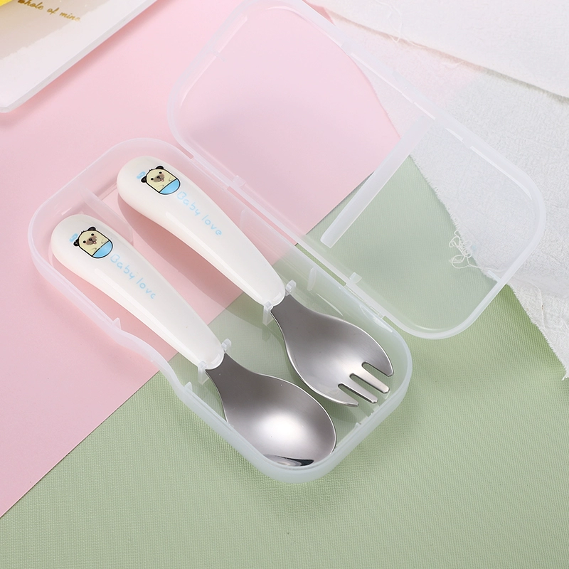 Cartoon 304 stainless steel children's tableware infant solid color fork and spoon set baby learning to eat training spoon