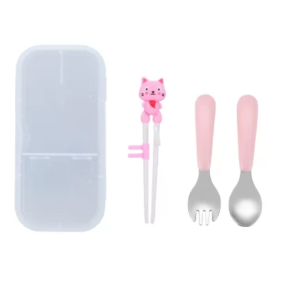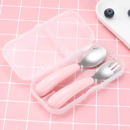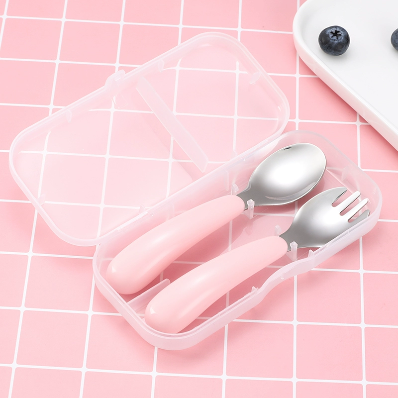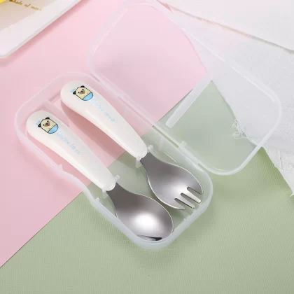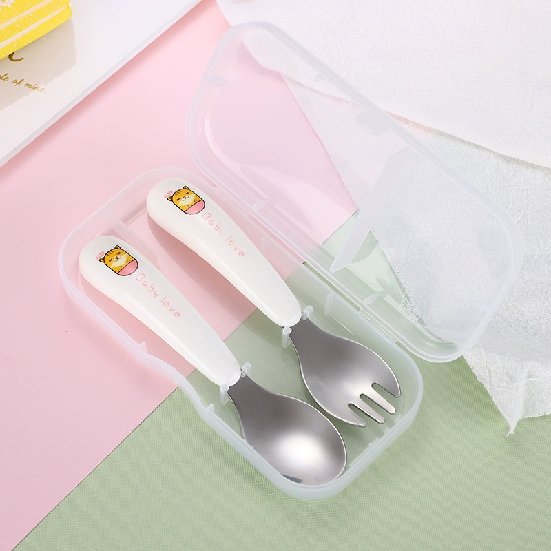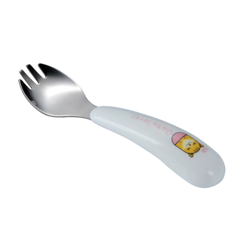 | nameOriginal | Cartoon 304 stainless steel children's tableware infant solid color fork and spoon set baby learning to eat training spoon |