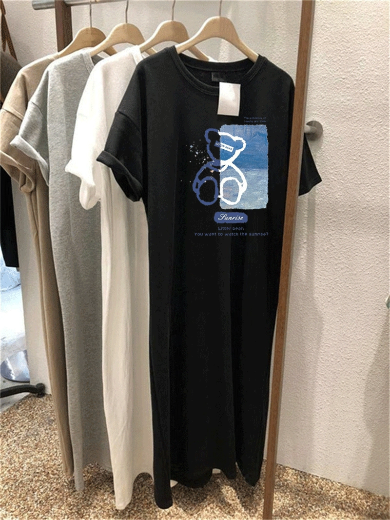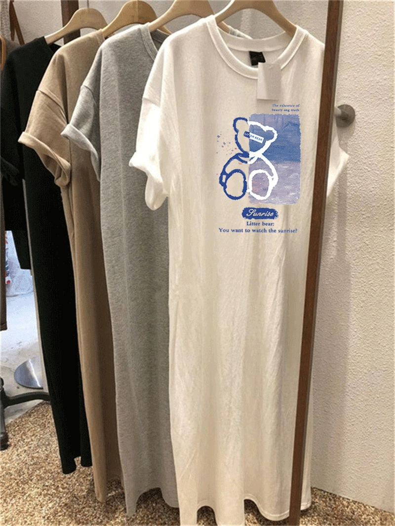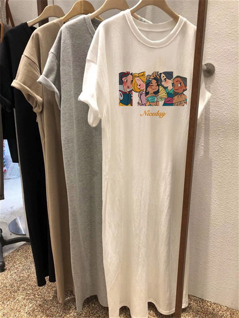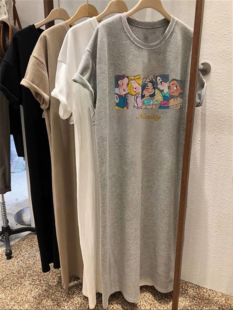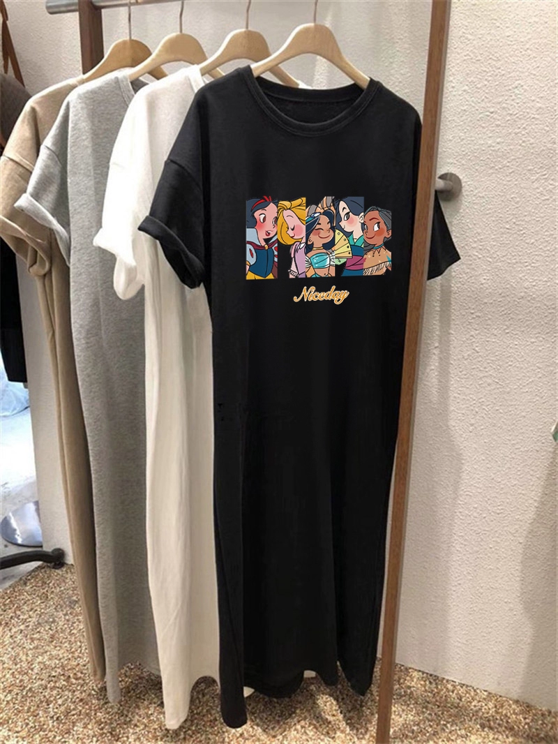 | nameOriginal | Cartoon anime pajamas student short-sleeved women's summer long T-shirt skirt knee-length skirt Korean fashion home nightgown |
