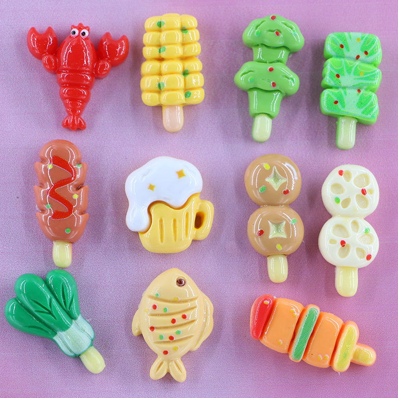 Cartoon BBQ String Resin Accessories DIY Jewelry Cream Glue Accessories Phone Case Hairpin Patch DIY Handmade Material