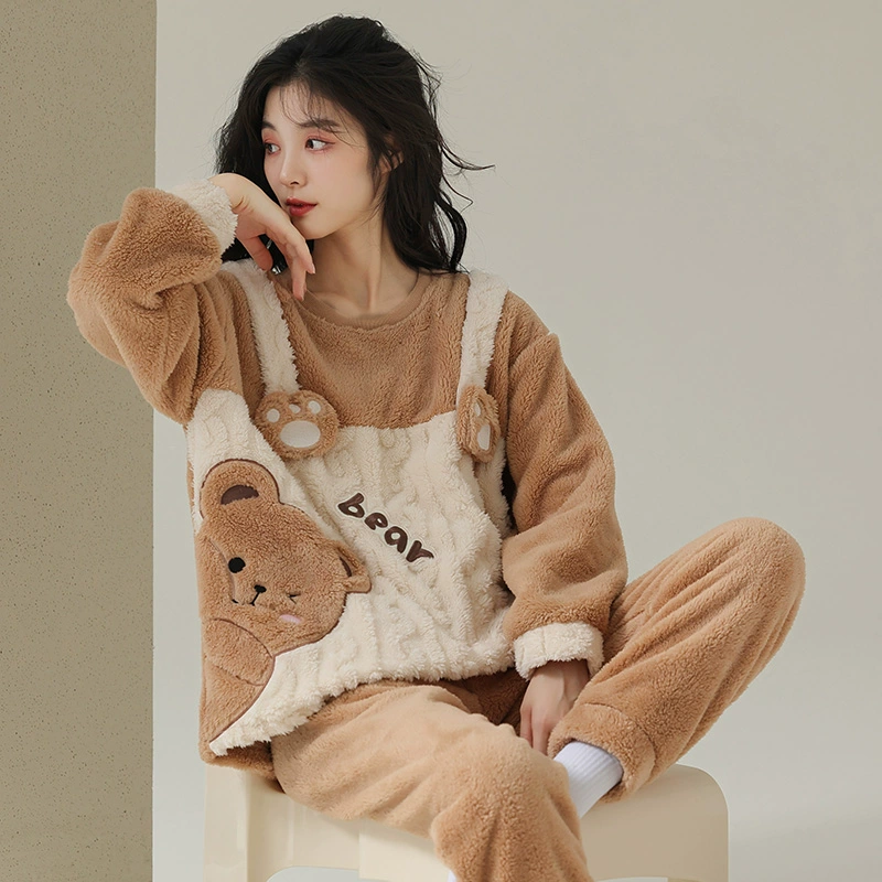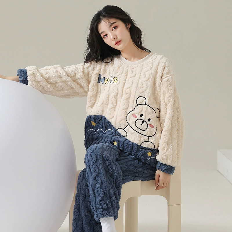 | nameOriginal | Cartoon Bear Pajamas Women's Autumn and Winter Coral Velvet Plus Velvet Thickened Winter Cute Flannel Home Clothes Set |
