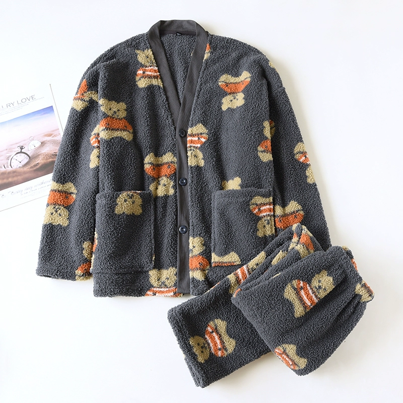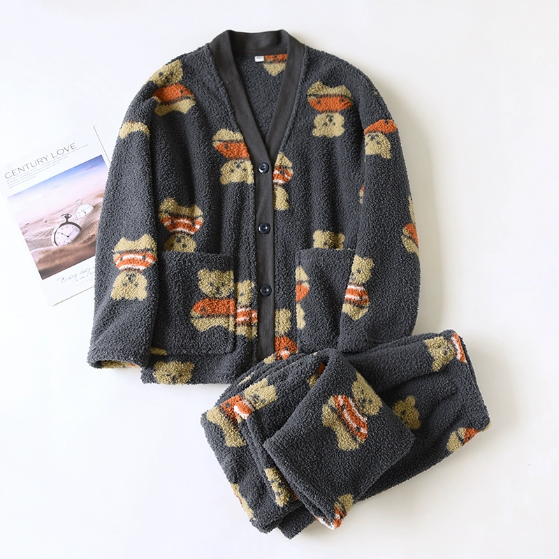 | nameOriginal | Cartoon bear rice velvet pajamas for women V-neck thickened winter men's velvet warm couple's flannel home clothes |