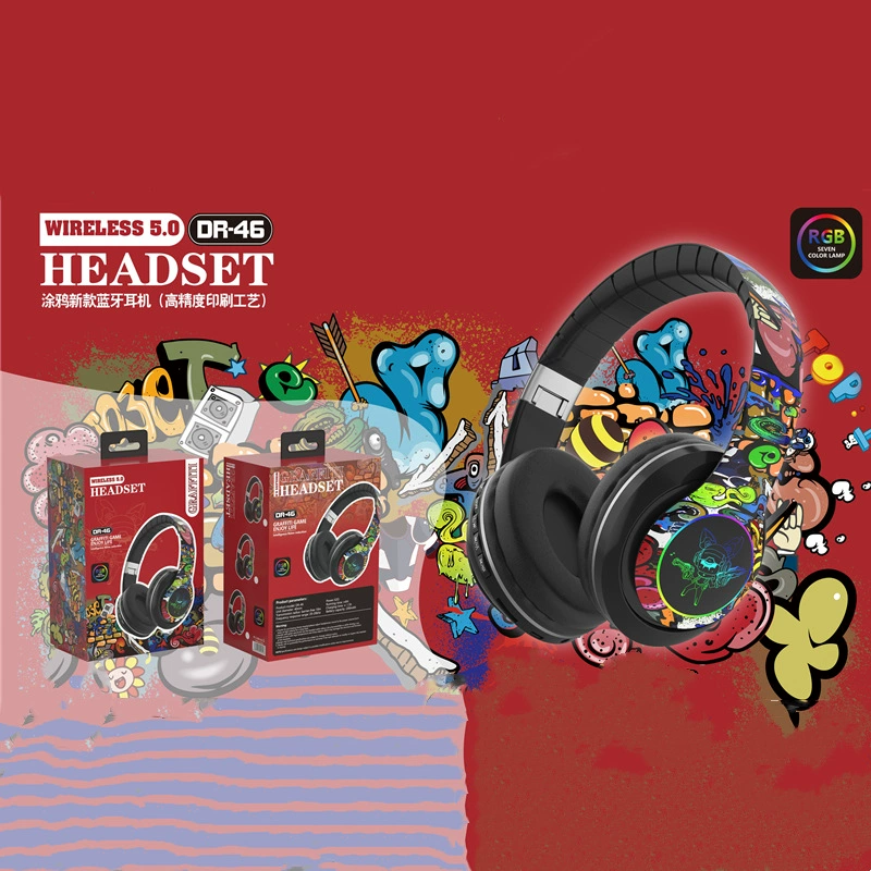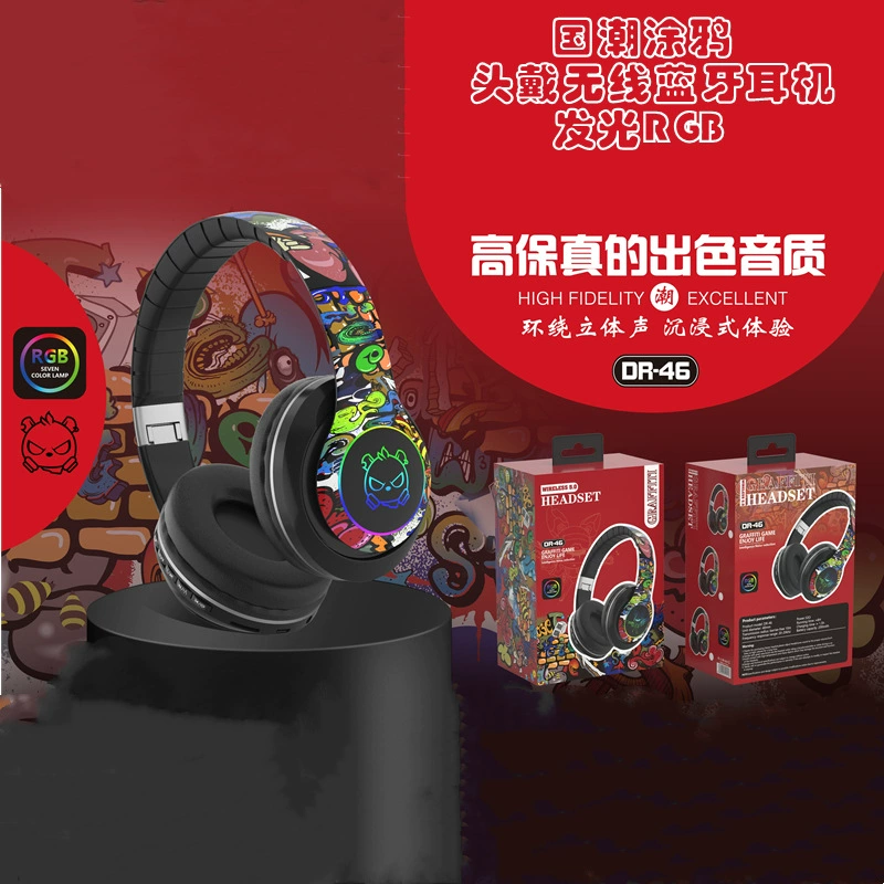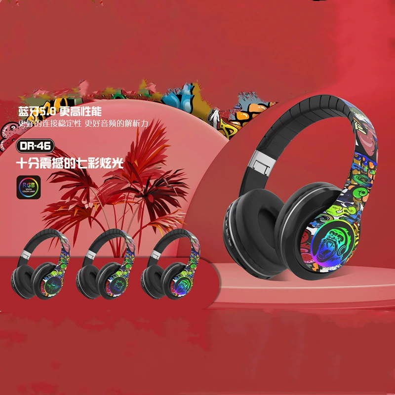Cartoon Bluetooth headset, head-mounted sports and competitive game headset, graffiti national trend, men and women, universal for mobile phones and computers