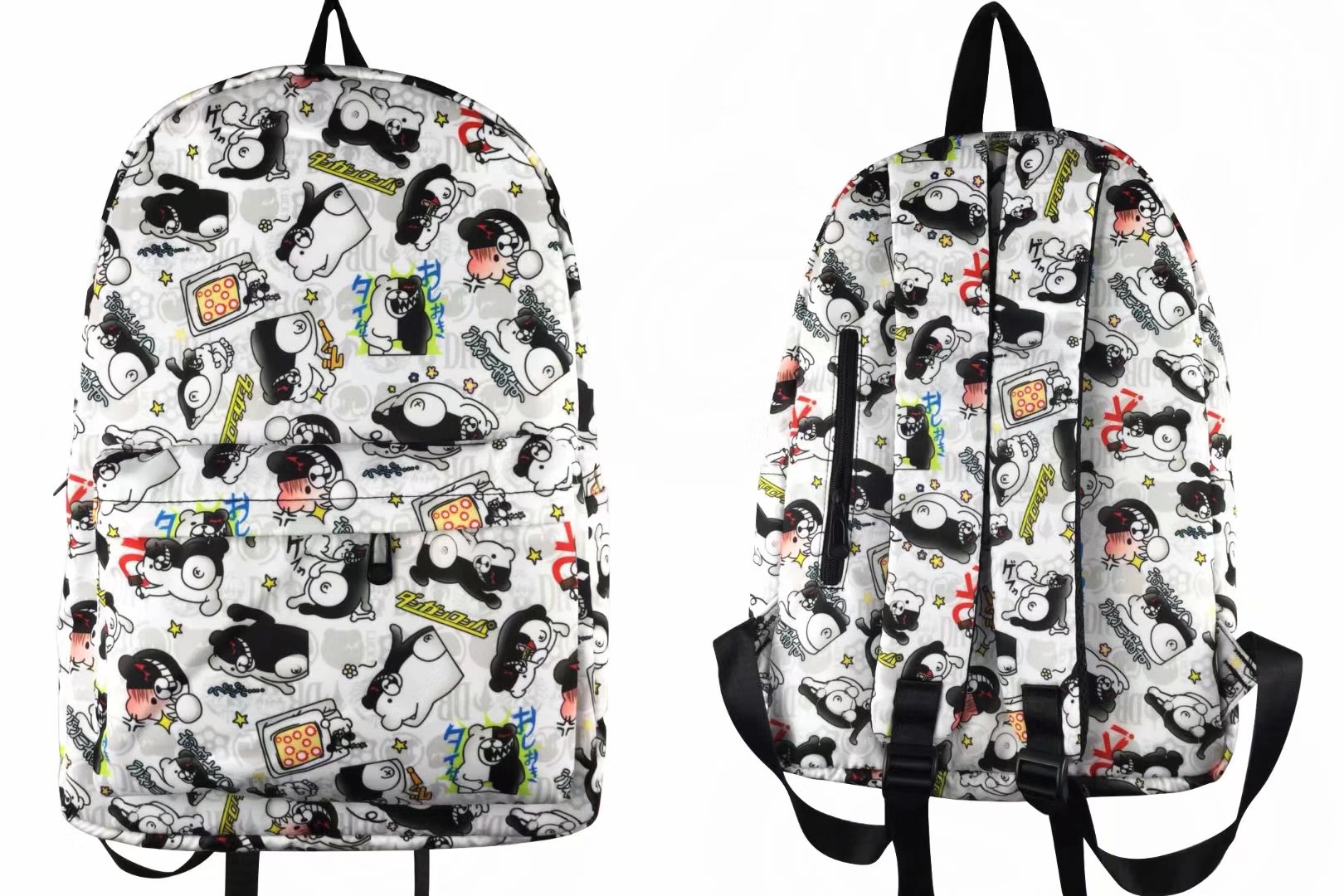 Cartoon bullet theory broken peripheral youth fashion backpack black white bear male and female student schoolbag backpack travel bag