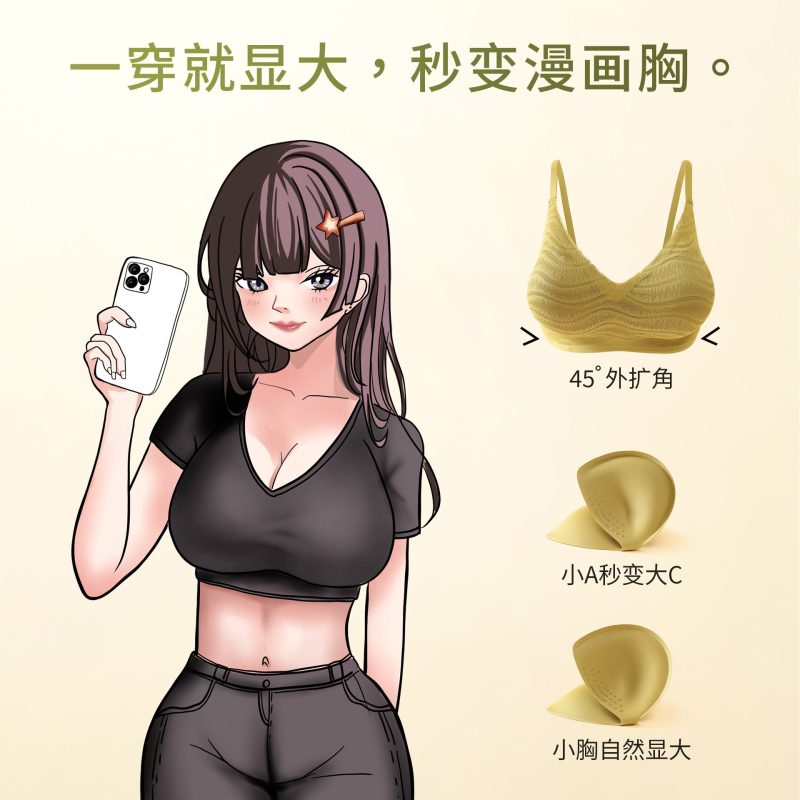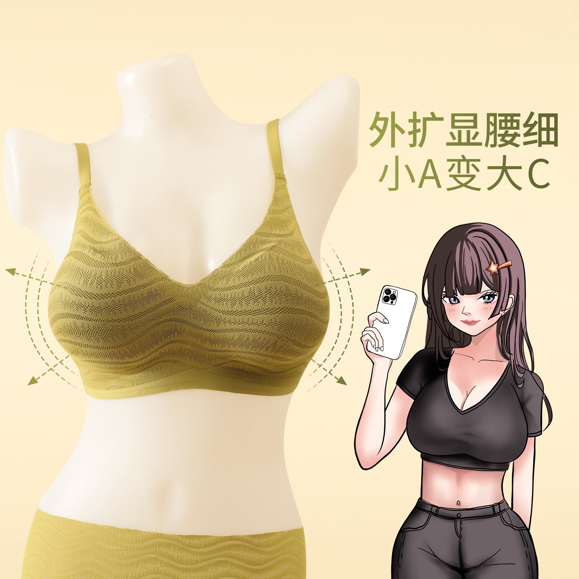 [Cartoon Chest Enlarged Underwear] Sexy Lace Comfortable Thickened Cup Small Chest Large Gather Soft Support Bra for Women