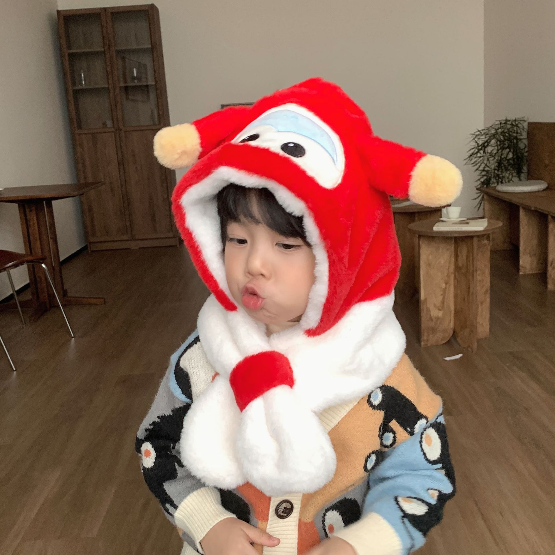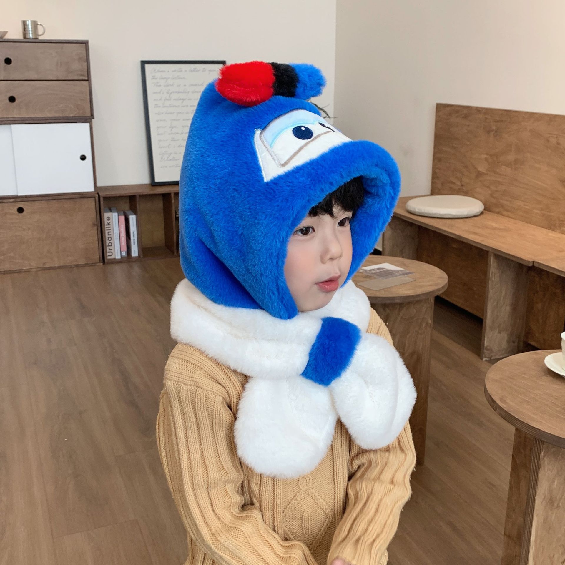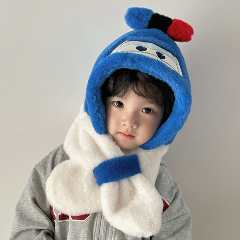 Cartoon children's hat scarf one hat two-piece set Winter fleece-lined thick windproof warm male and female baby
