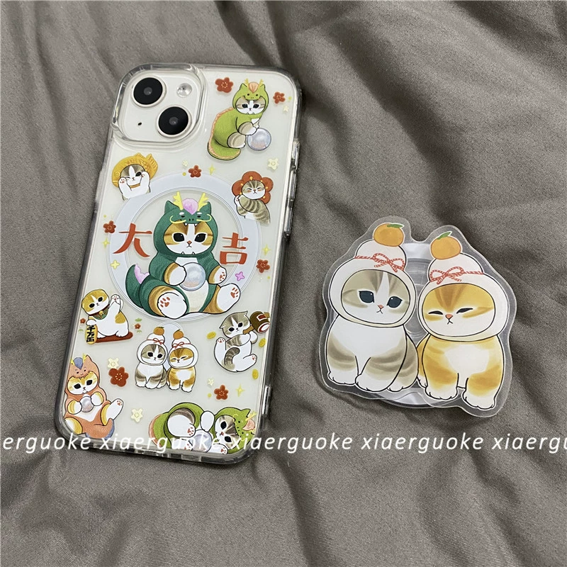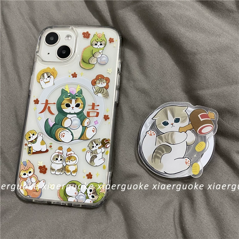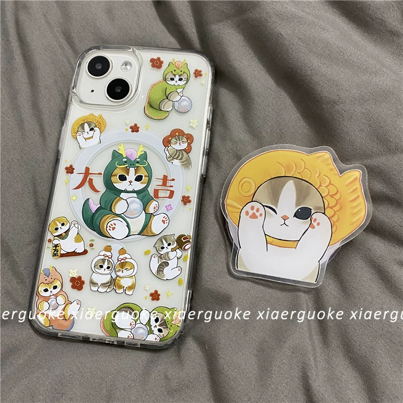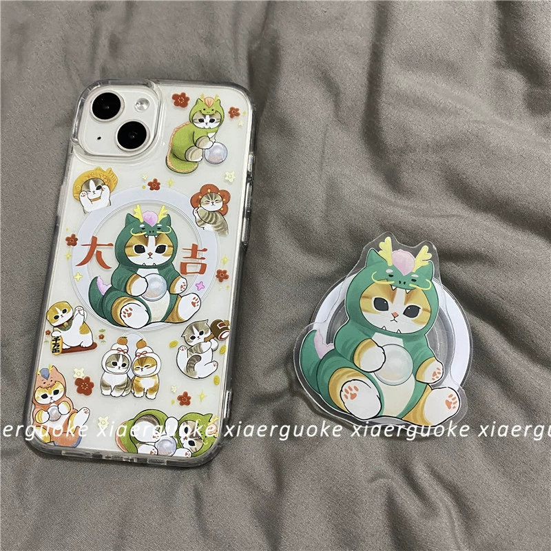 | nameOriginal | Cartoon cute dragon New Year cat 15promax mobile phone case suitable for Apple 13/14 hard shell acrylic magsafe magnetic holder iPhone12 large hole anti-fall new style girls plus |