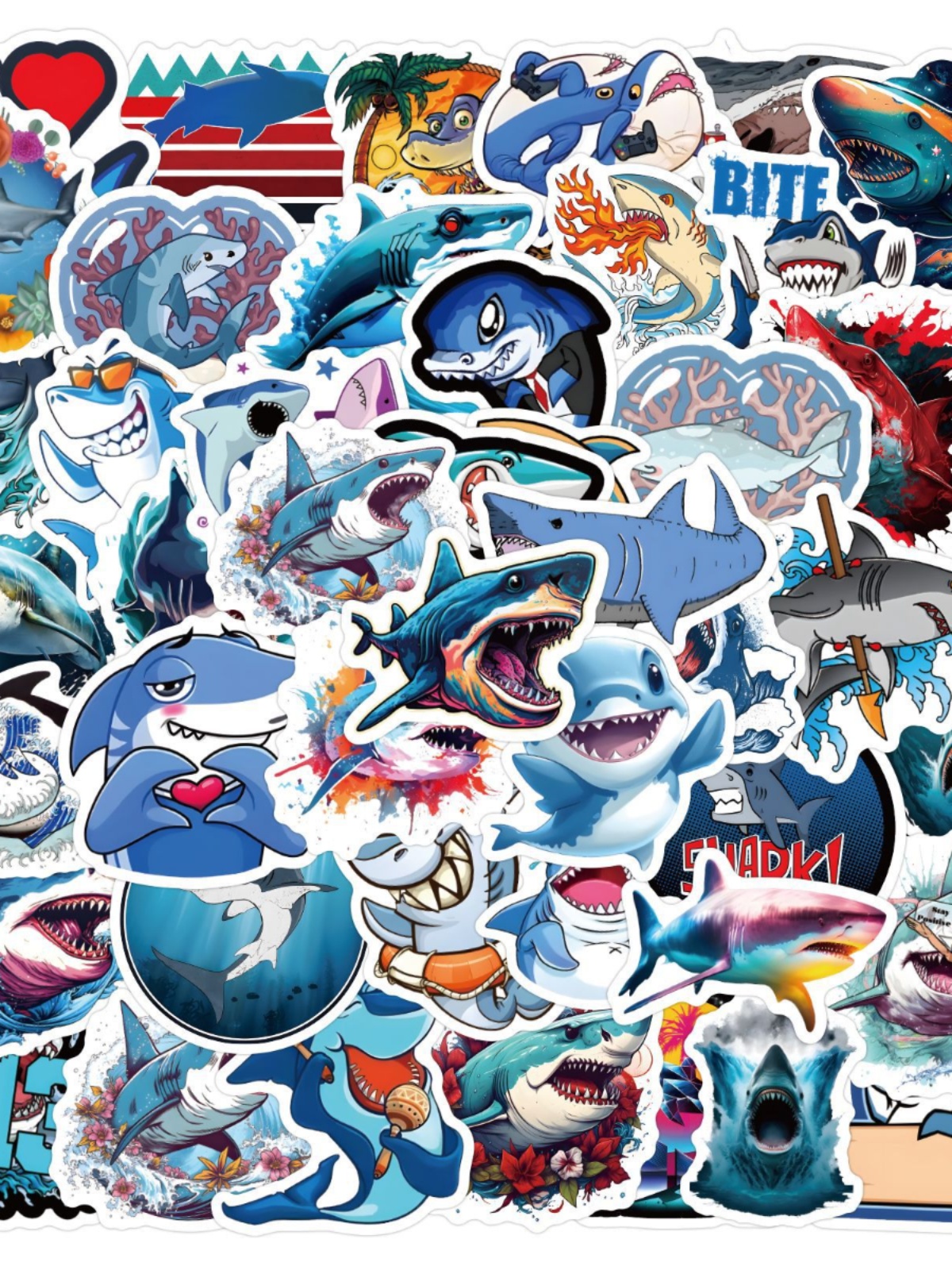 | nameOriginal | Cartoon cute ferocious shark marine life stickers personalized battery twist car suitcase mobile phone children's stickers |