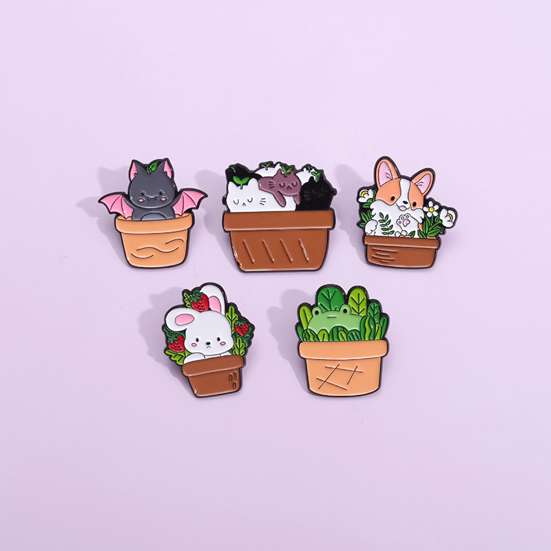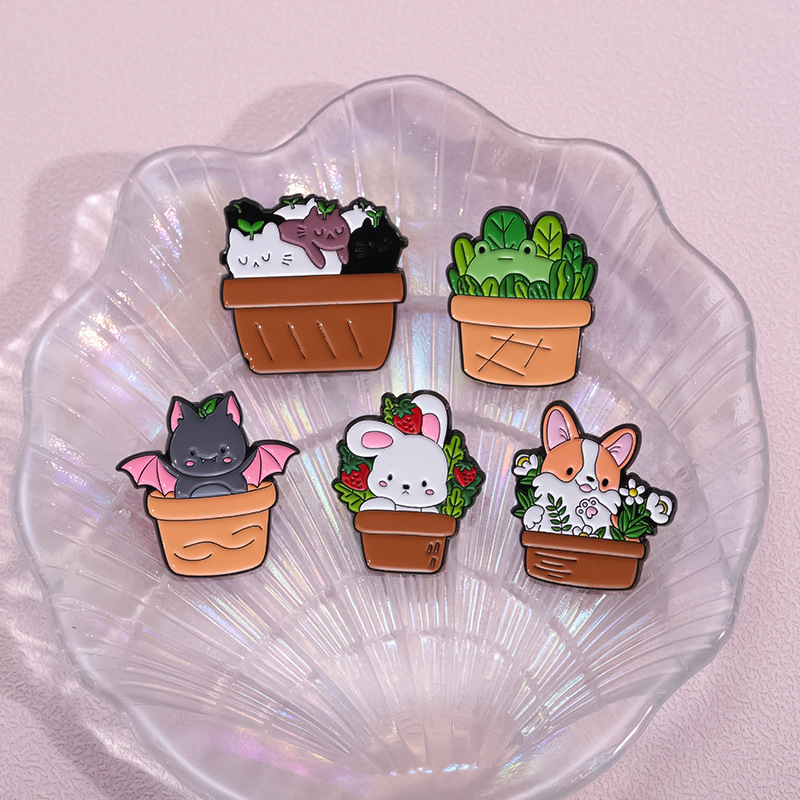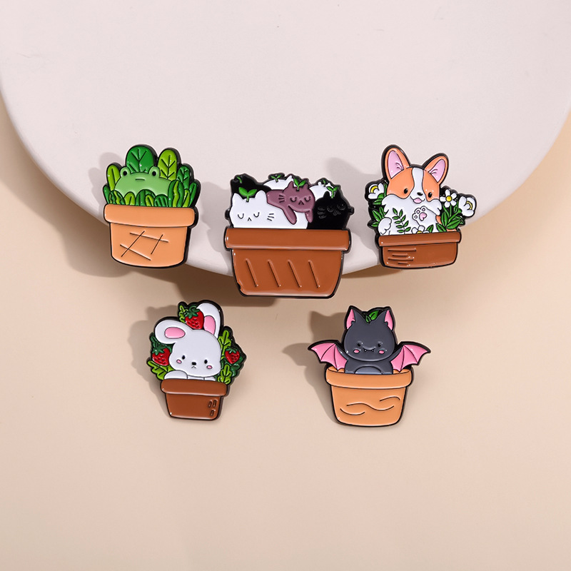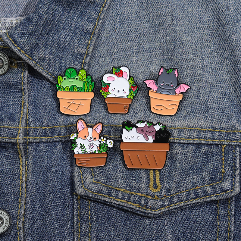 | nameOriginal | Cartoon Cute Potted Animal Rabbit Frog Cat Niche Styling Personalized Fashion All-match Decorations Brooch |