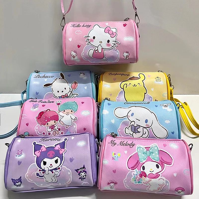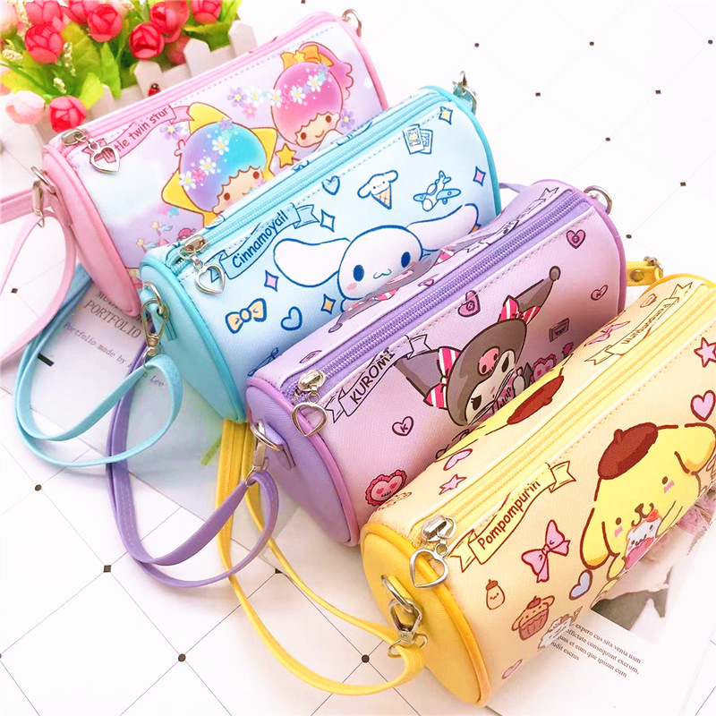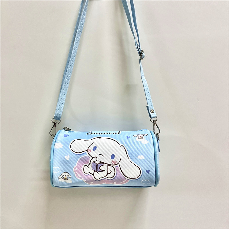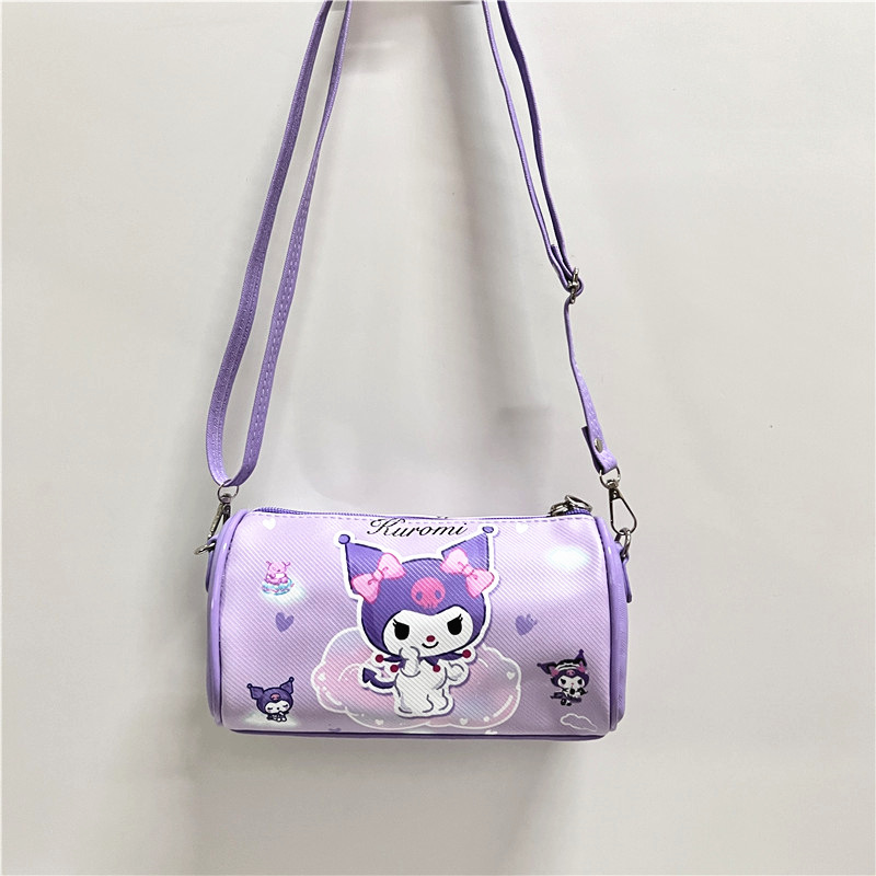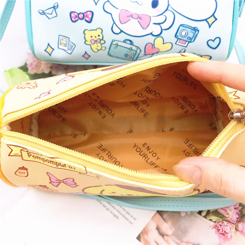 Cartoon Cylinder Shoulder Bag Cute Kulomi White Dog PU Waterproof Children's Casual Shoulder Bag Portable Storage Bag