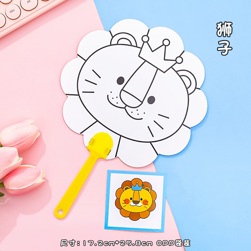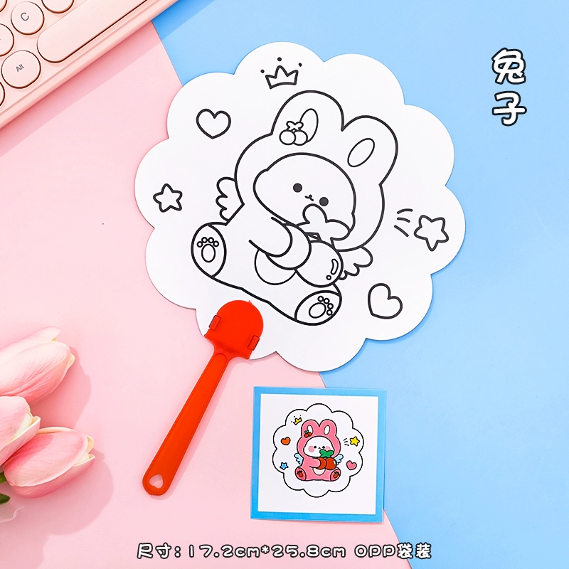 | nameOriginal | Cartoon diy graffiti fan children's cute hand-painted blank small fan kindergarten coloring painting plastic round fan |
