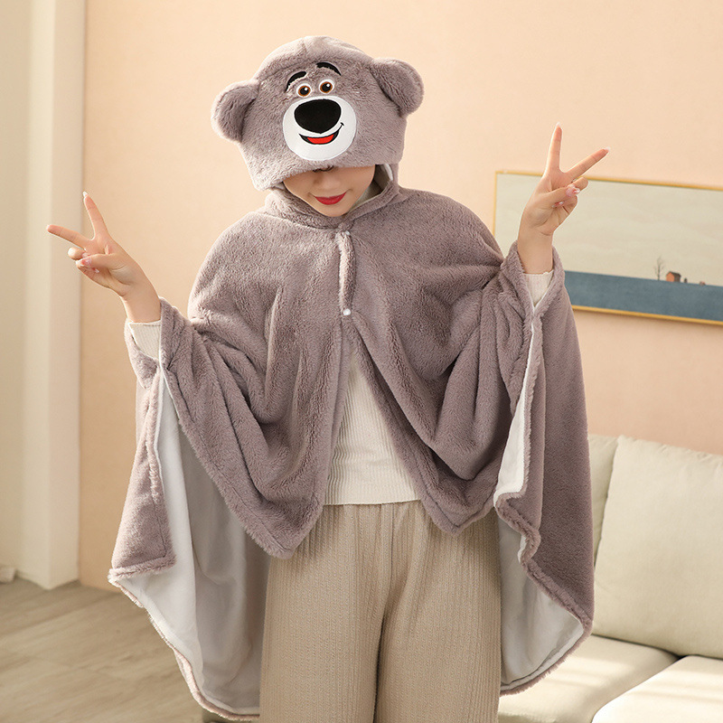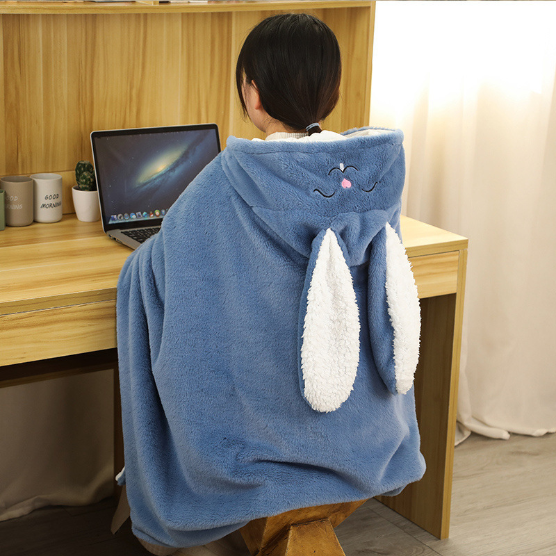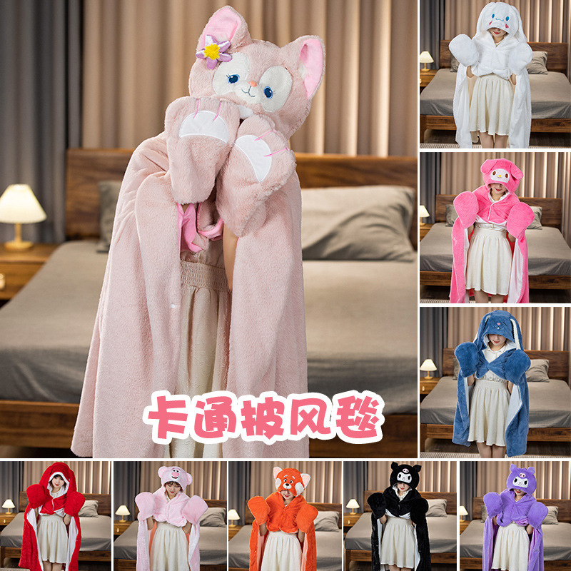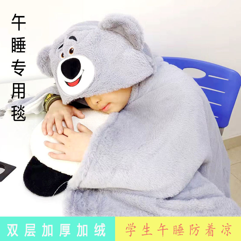 Cartoon Double Thickened Cloak Children’s Student Nap Blanket Office Air-conditioning Blanket Warm Hooded Shawl Poncho