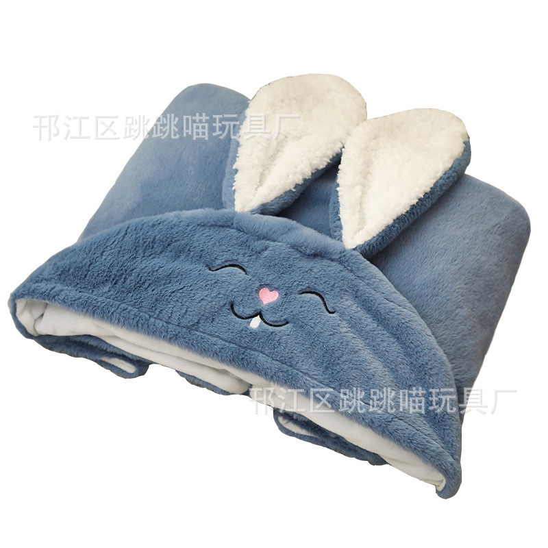 Cartoon Double Thickened Cloak Children's Student Nap Blanket Office Air-conditioning Blanket Warm Hooded Shawl Poncho
