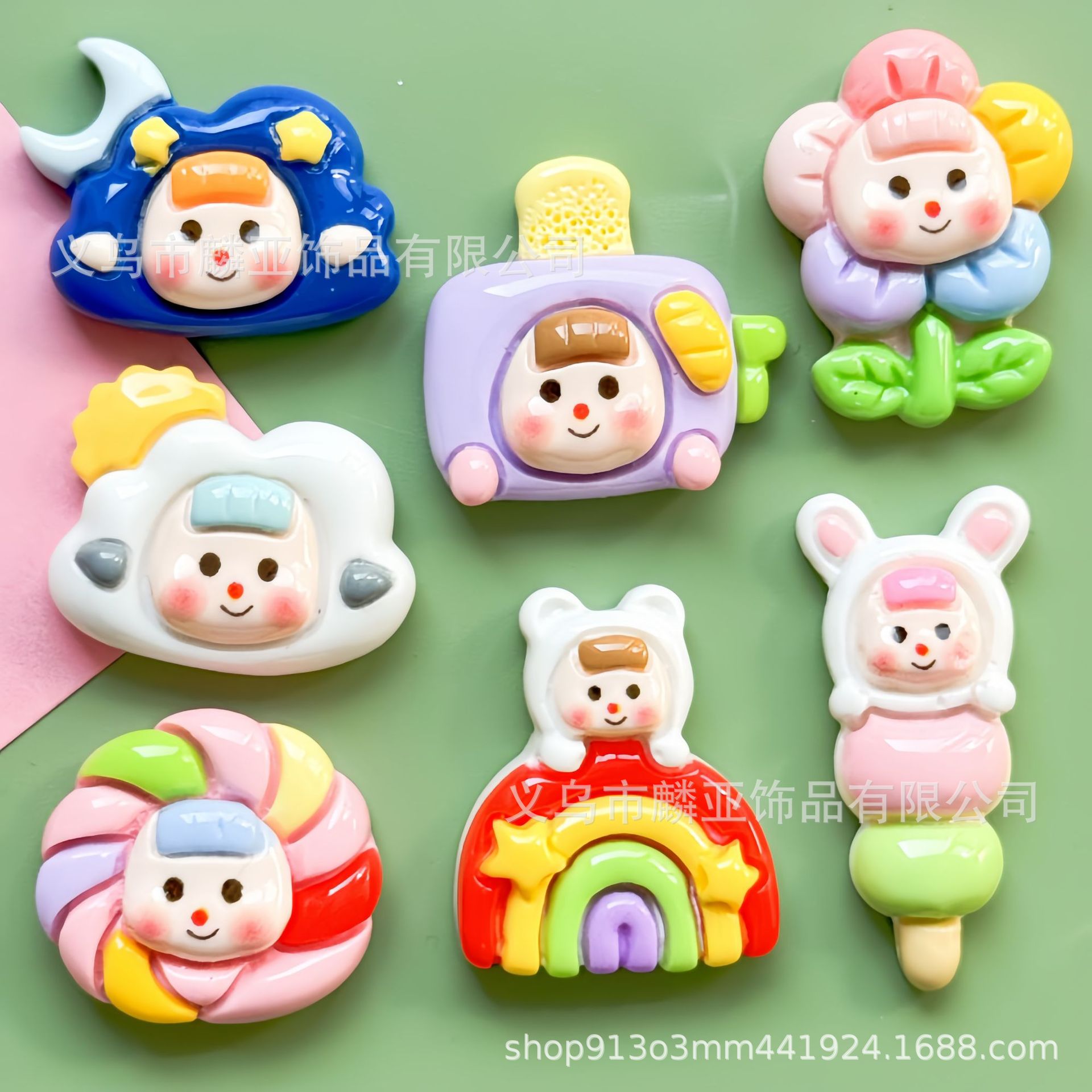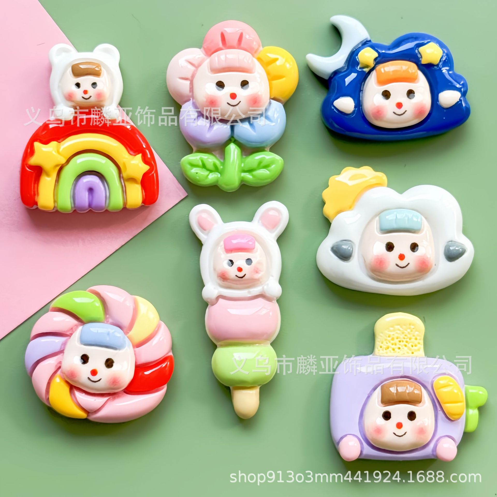 Cartoon glossy rainbow cloud multi-sister resin accessories diy cream glue handmade hairpin phone case jewelry material