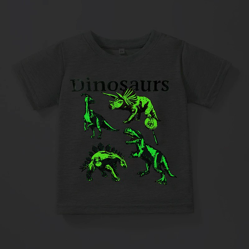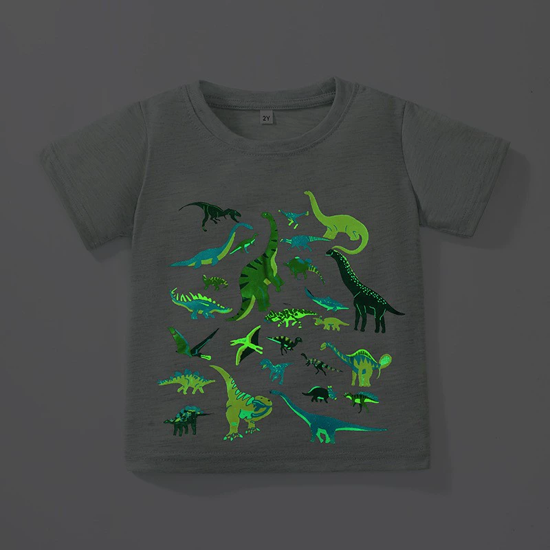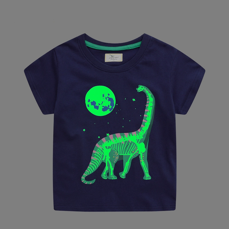 Cartoon night light dinosaur tights 6 -year -old baby short -sleeved T -shirt