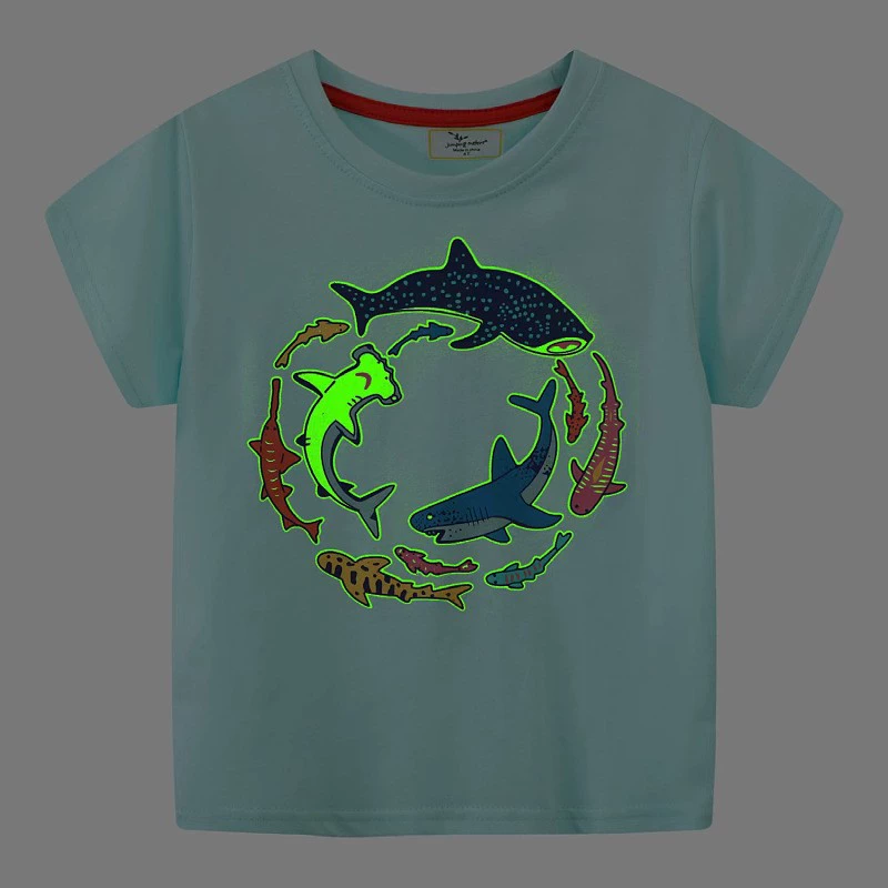 Cartoon glow-in-the-dark dinosaur octopus 6-year-old baby short-sleeved T-shirt
