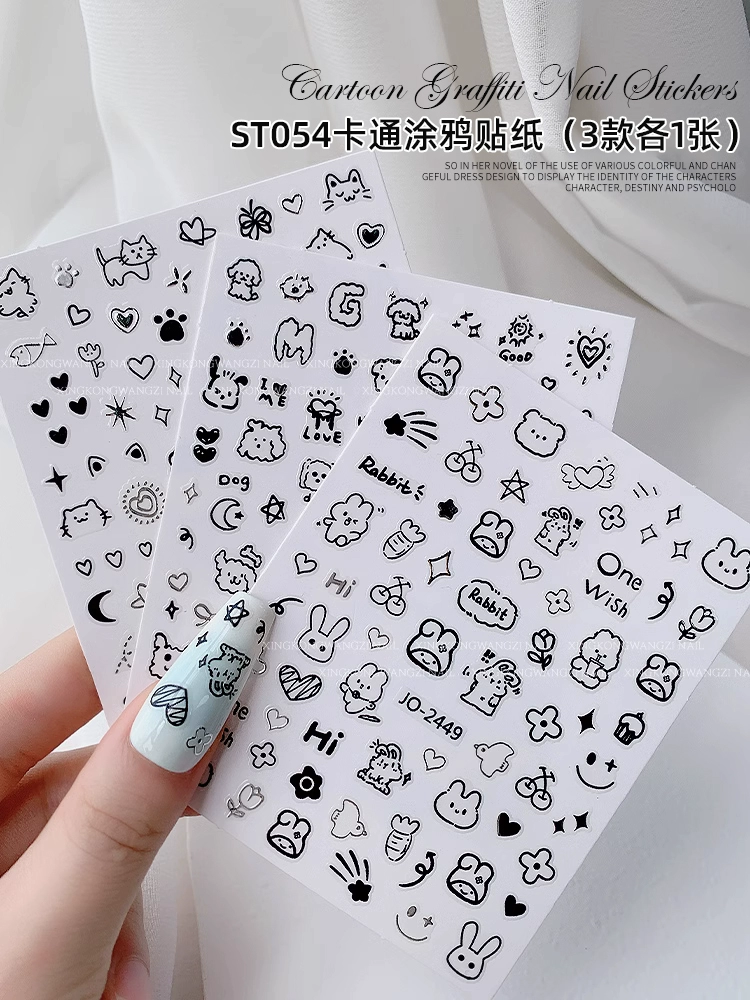 | nameOriginal | Cartoon Graffiti Style Cute Animal Back Adhesive Nail Art Stickers |