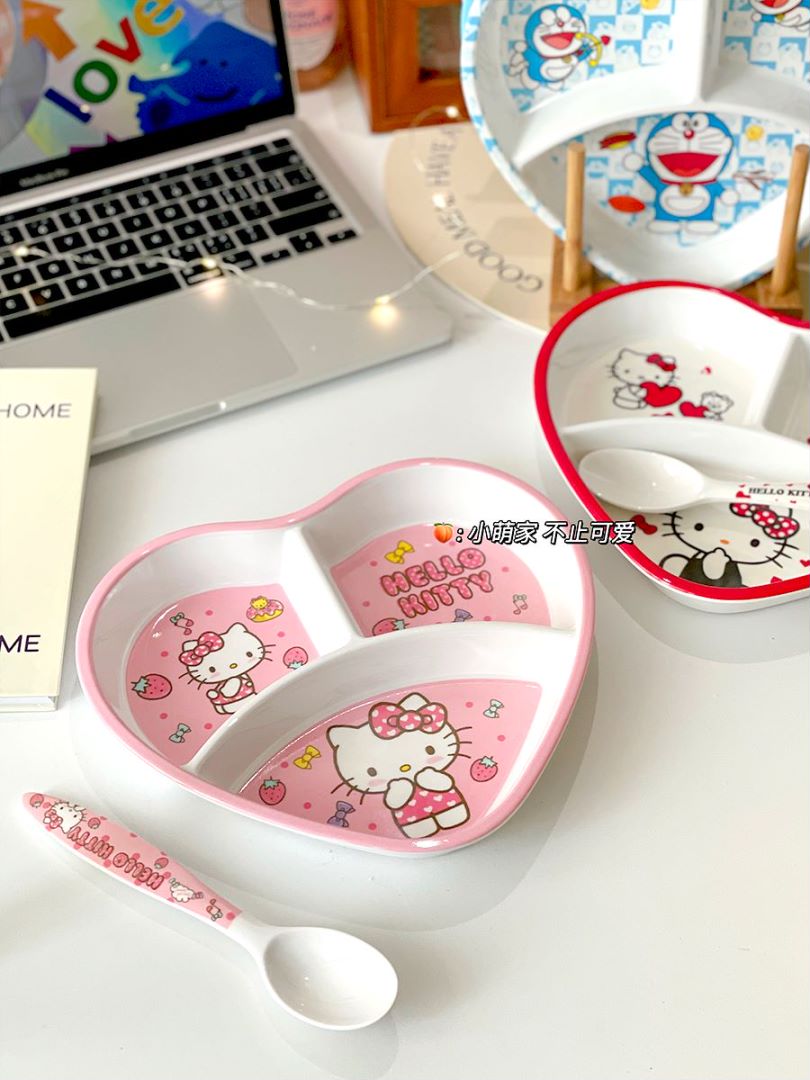 Cartoon Heart-shaped Three-compartment Household Meal Plate with Milamine Split for Children and Students Western-style Fruit Steak Tray for Breakfast