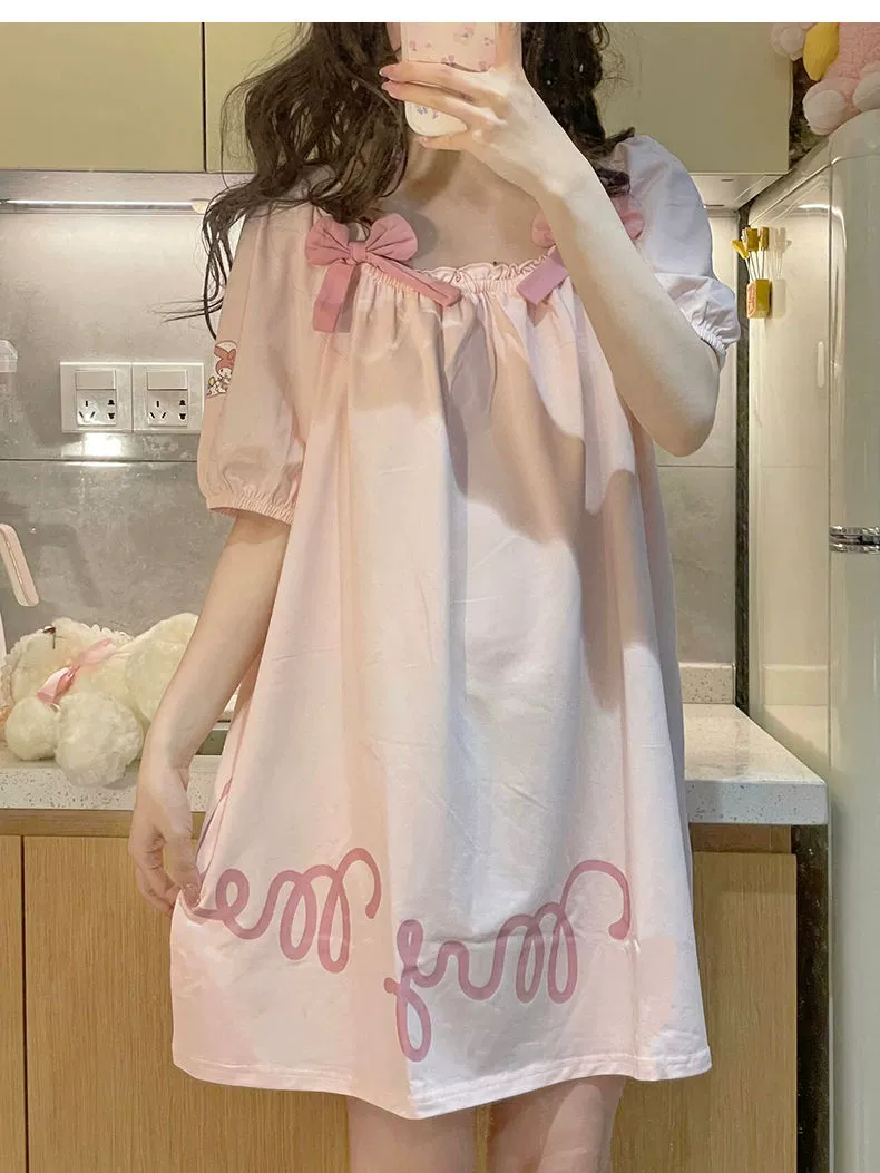 | nameOriginal | Cartoon Kuromi short-sleeved nightgown for girls summer mid-length skirt pajamas sweet and cute student home clothes can be worn outside |