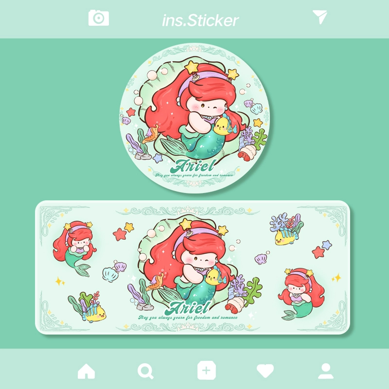| nameOriginal | Cartoon mermaid cute little fresh trumpet girl round mouse pad laptop game computer creative office  |