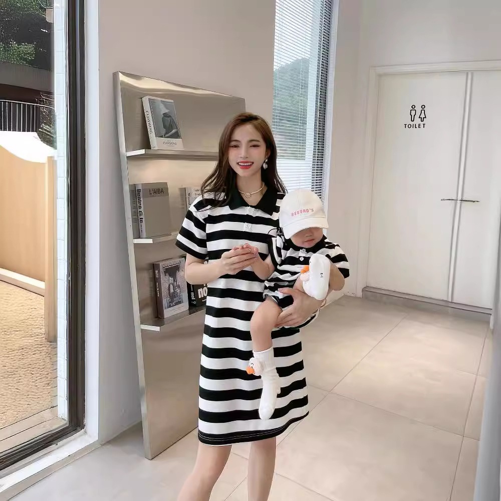 | nameOriginal | Cartoon Parent-child Dress Summer Family of Three and Family of Four Striped Polo Shirt Mother and Daughter dress Short-sleeved Top |