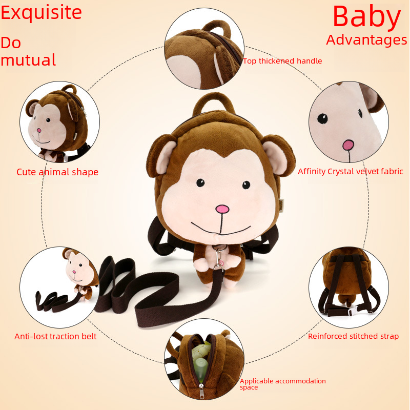 Cartoon plush girls' cute anti-lost bag anti-lost bag Backpack Baby Kindergarten schoolbag wholesale