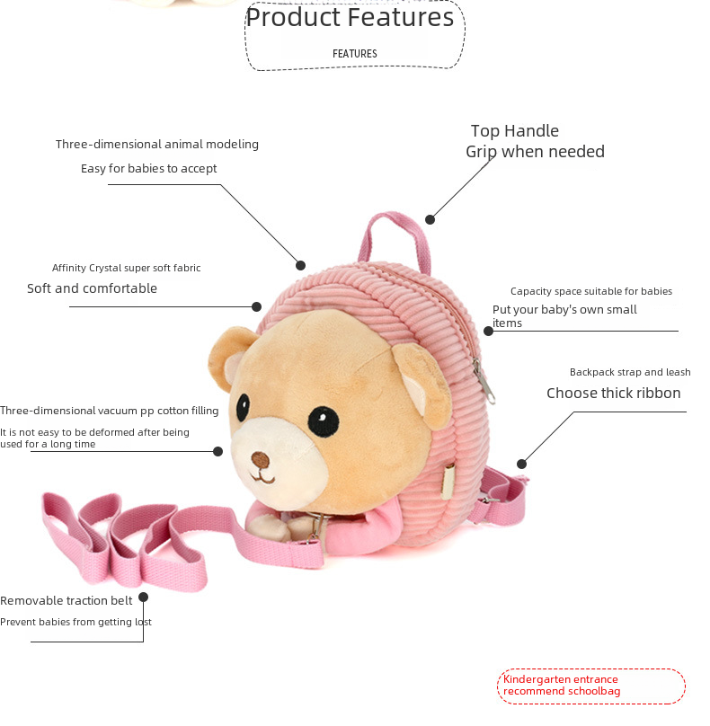 Cartoon plush girls’ cute anti-lost bag anti-lost bag Backpack Baby Kindergarten schoolbag wholesale
