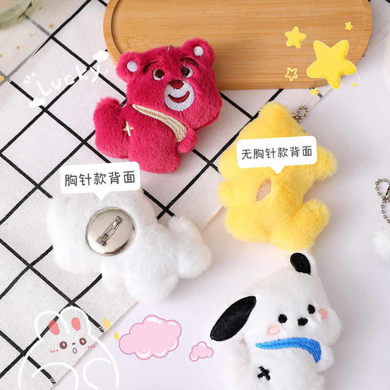 | nameOriginal | Cartoon plush strawberry bear brooch cute Pacha dog Doll Doll bag ornaments diy clothing accessories wholesale |