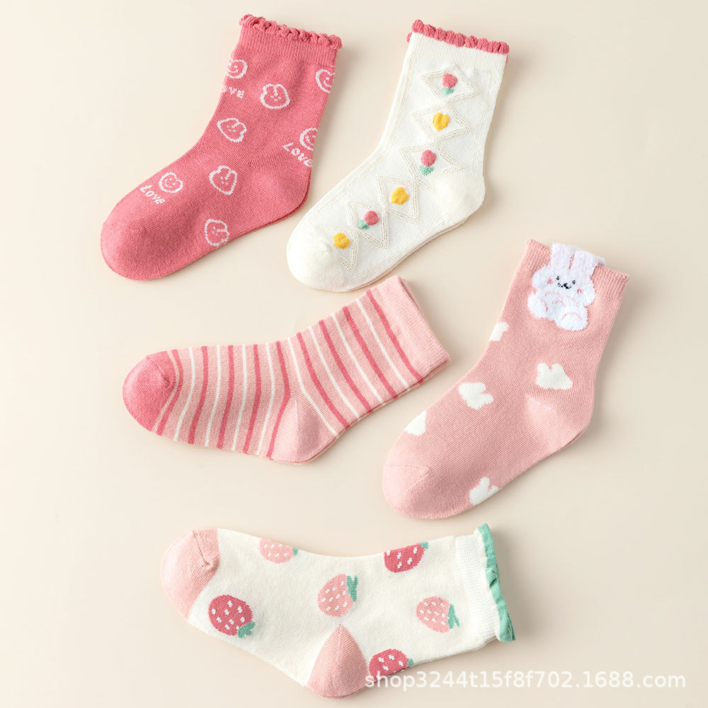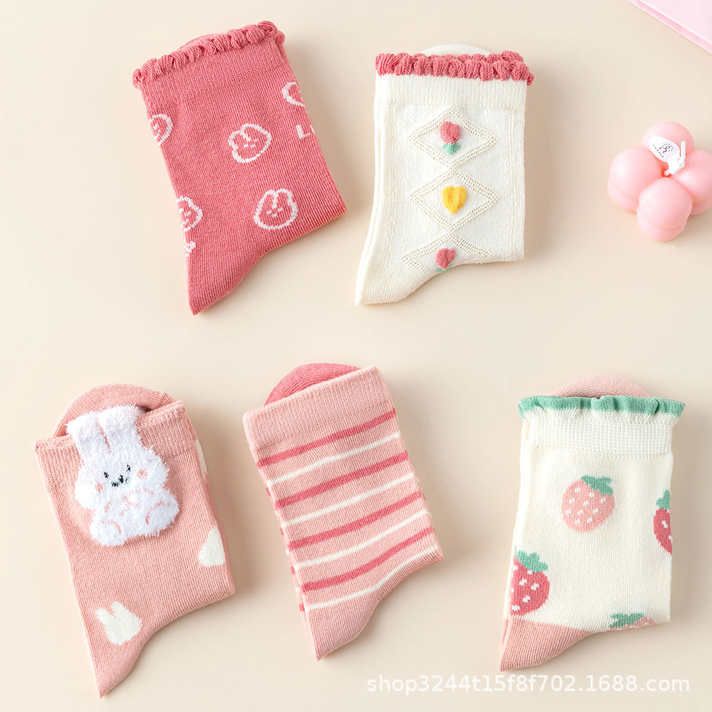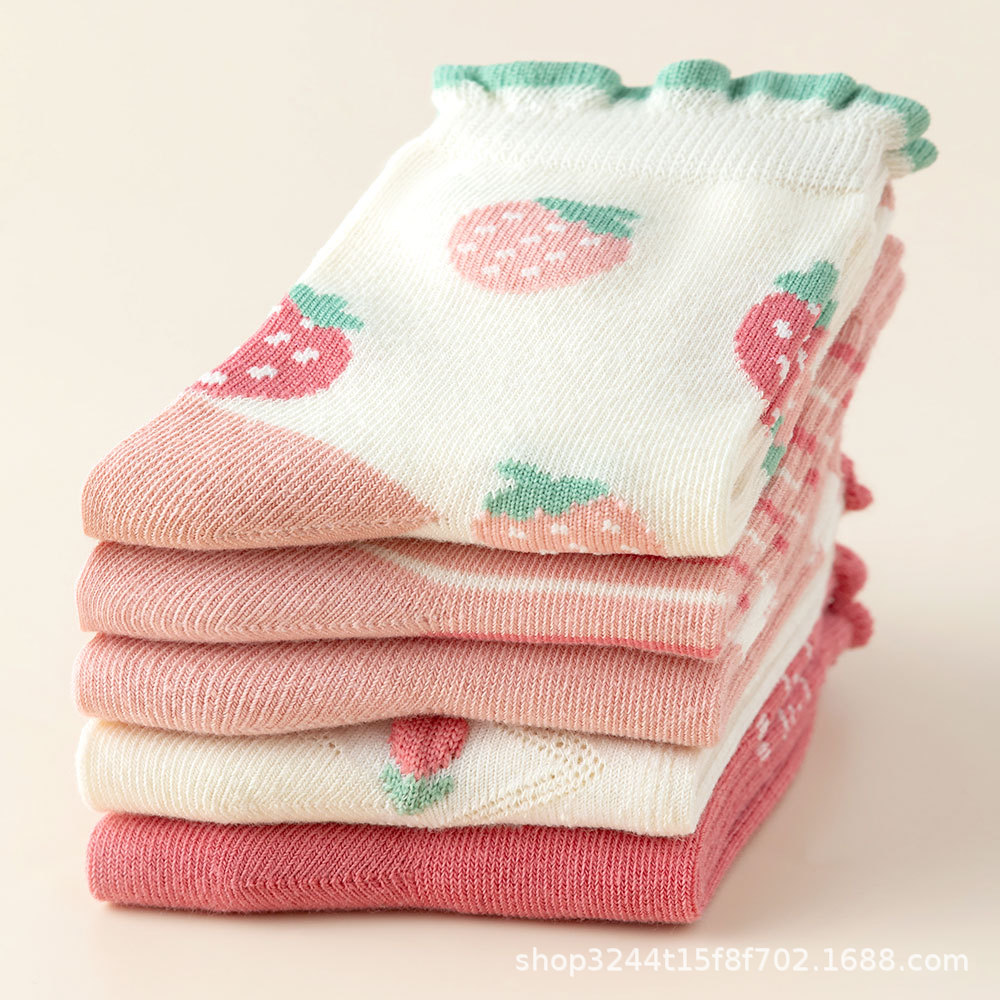 | nameOriginal | Cartoon Printed Strawberry Girl Skin-Friendly Comfortable All-Match Mid-Size Socks Thin Breathable Girl Socks 5 Pair Pack |