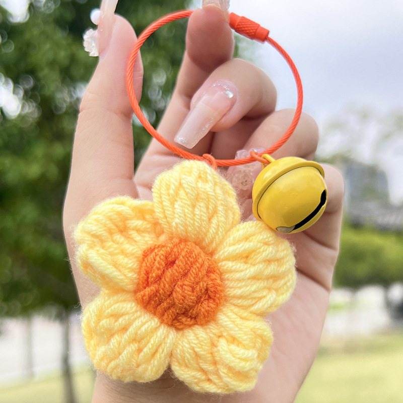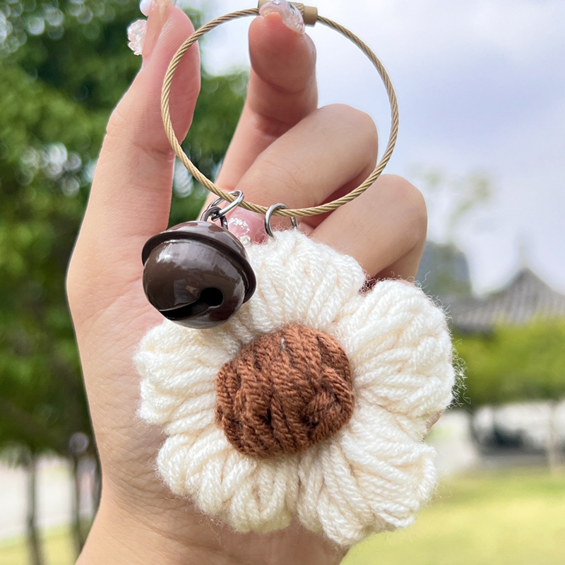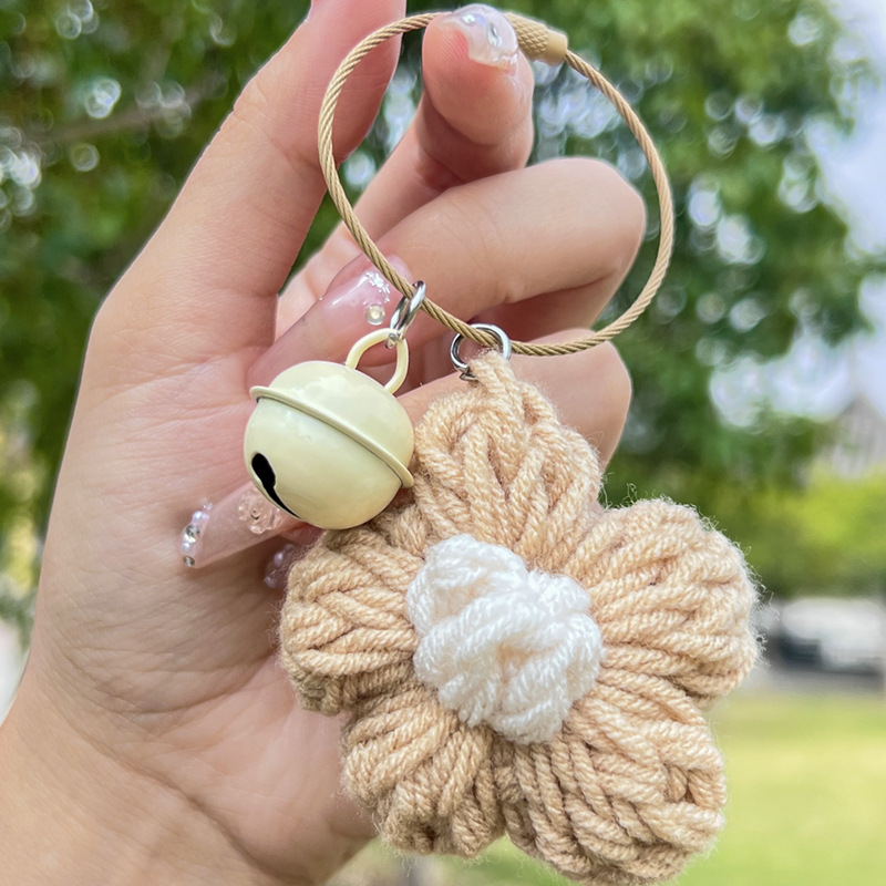 Cartoon puff flower woven pendant schoolbag ornaments key chain wholesale girl backpack key chain small items wholesale