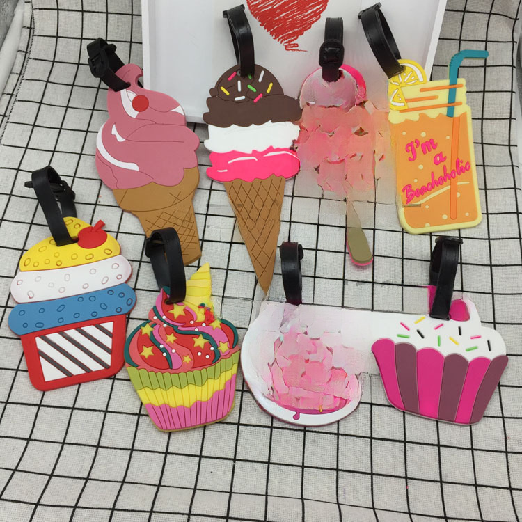 | nameOriginal | Cartoon pvc soft rubber luggage tag new ice cream aircraft boarding pass cake luggage tag customized silicone |