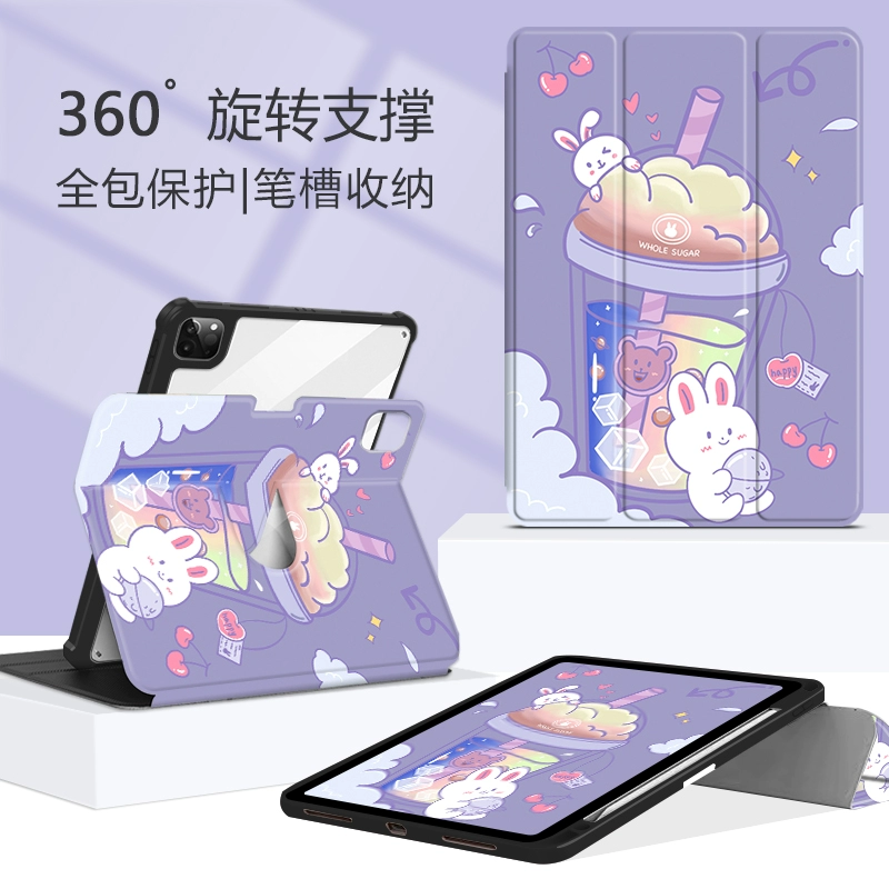 Cartoon rabbit milk tea suitable for Huawei tablet m6 protective cover 10.8/8.4 inch matepad11 silicone case 10.1 Enjoy tablet 2 Honor c5/v6m5 youth version three-fold with pen slot pro