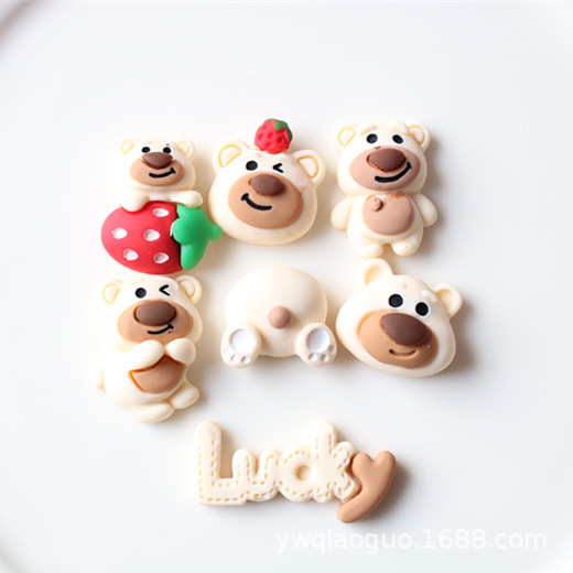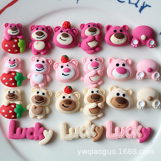 Cartoon Rose Red Strawberry Bear Letter Resin Accessories Mobile Phone Case Hair Accessories diy Material Storage Box Accessories