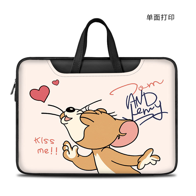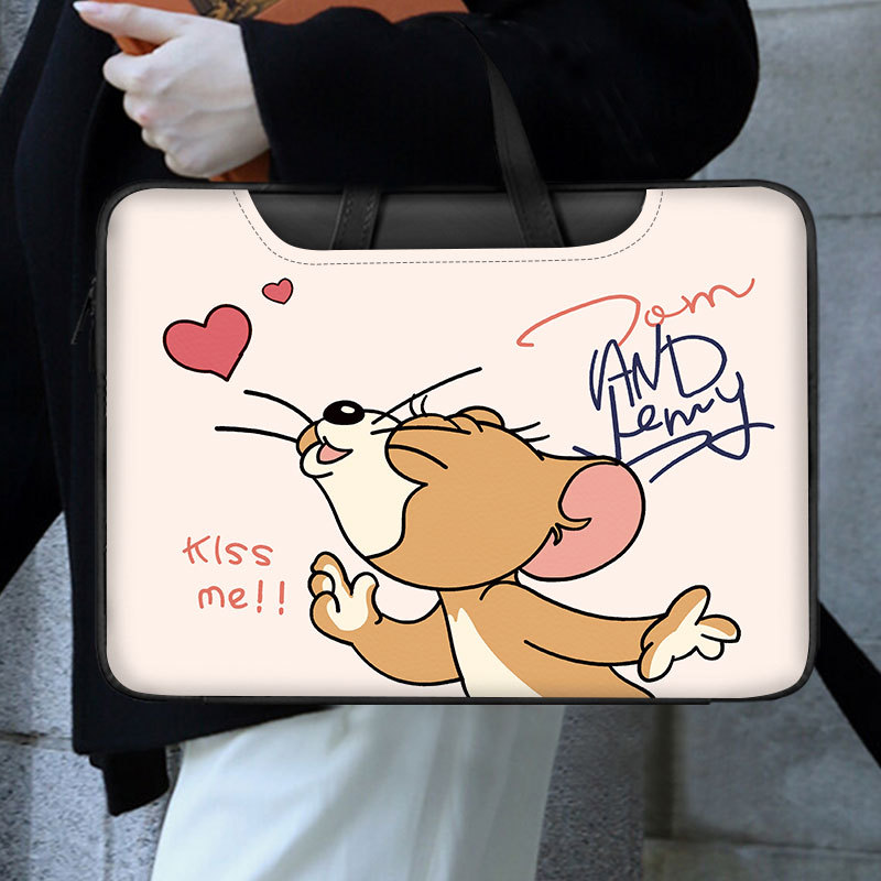 Cartoon Tom Jerry Laptop Bag Portable Shoulder Briefcase Business Bag fleece-lined Shatter-resistant Shock-resistant Interior