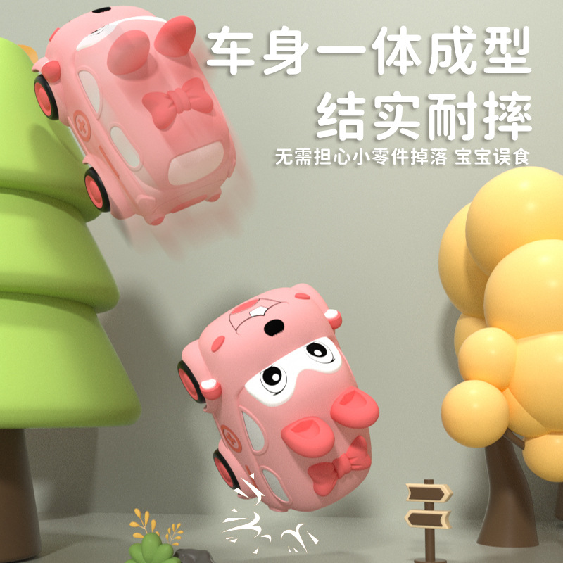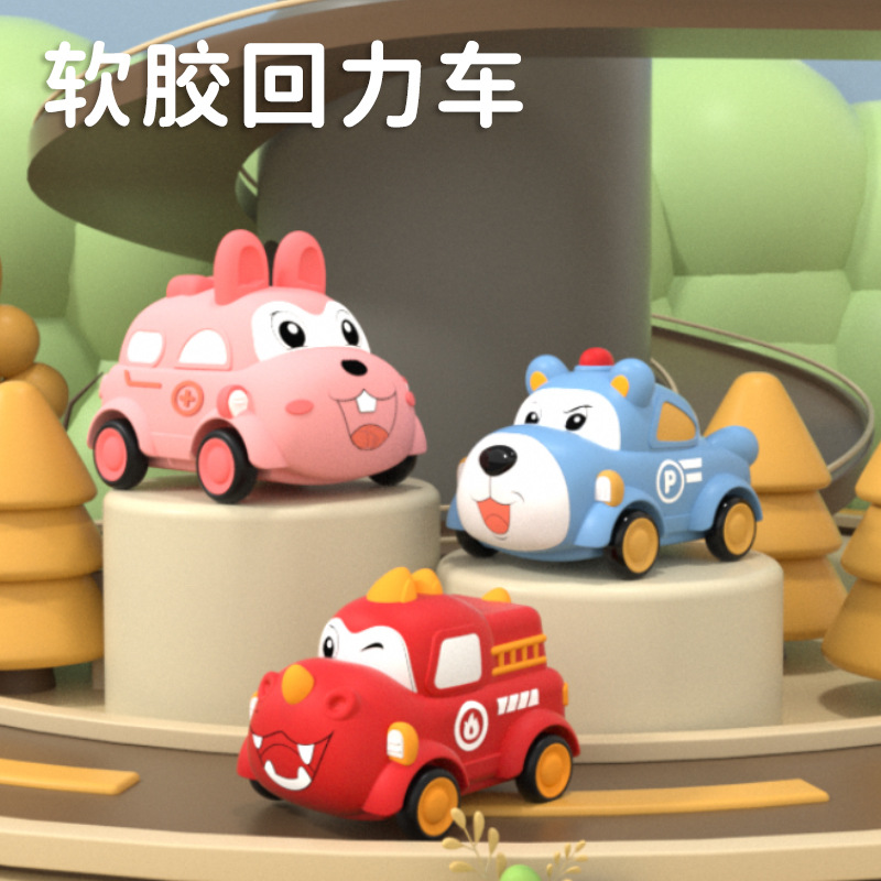 | nameOriginal | Cartoon toy car soft rubber animal children's back car baby q cute inertia car can bite fall baby toy |