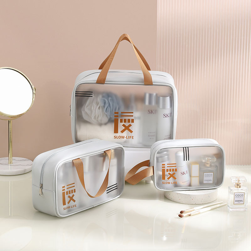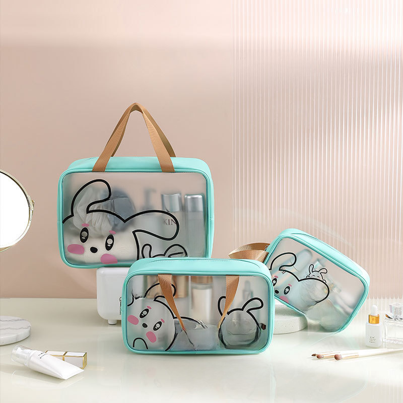 Cartoon transparent cosmetic bag storage bag three-piece portable wash bag waterproof bath bag cosmetic bag high-looking