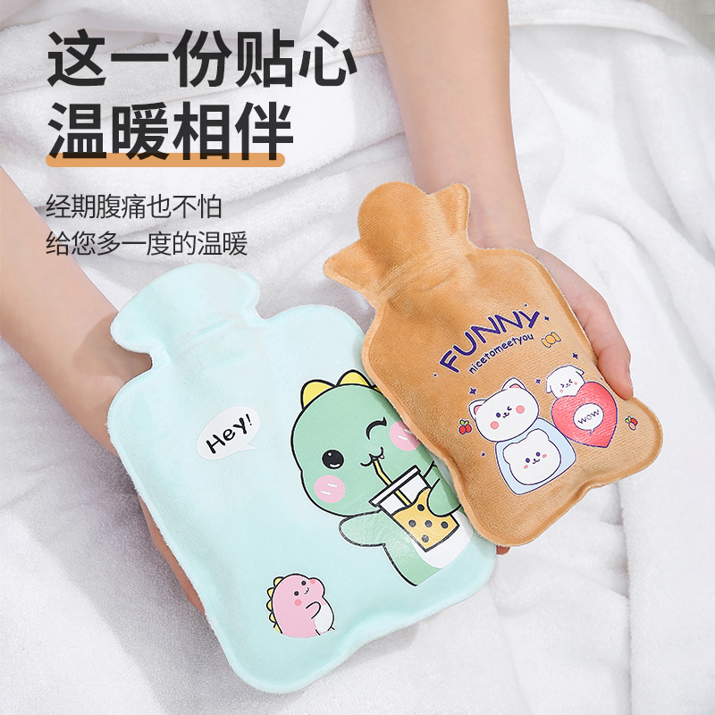 | nameOriginal | Cartoon water injection hot water bag large small size explosion-proof leak-proof flocking hand warmer irrigation belly hot compress hot water bag |
