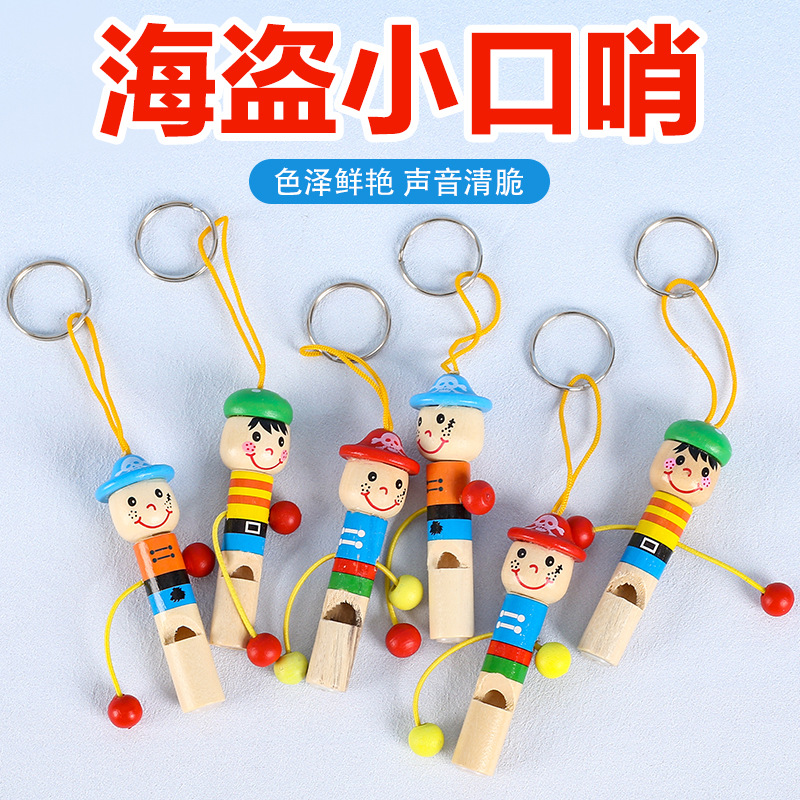| nameOriginal | Cartoon wooden pirate whistle toy children playing musical instrument baby whistle prize small gift |