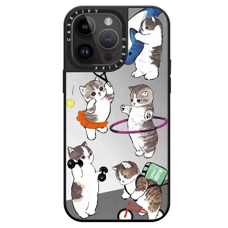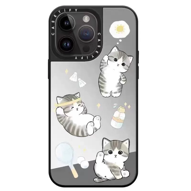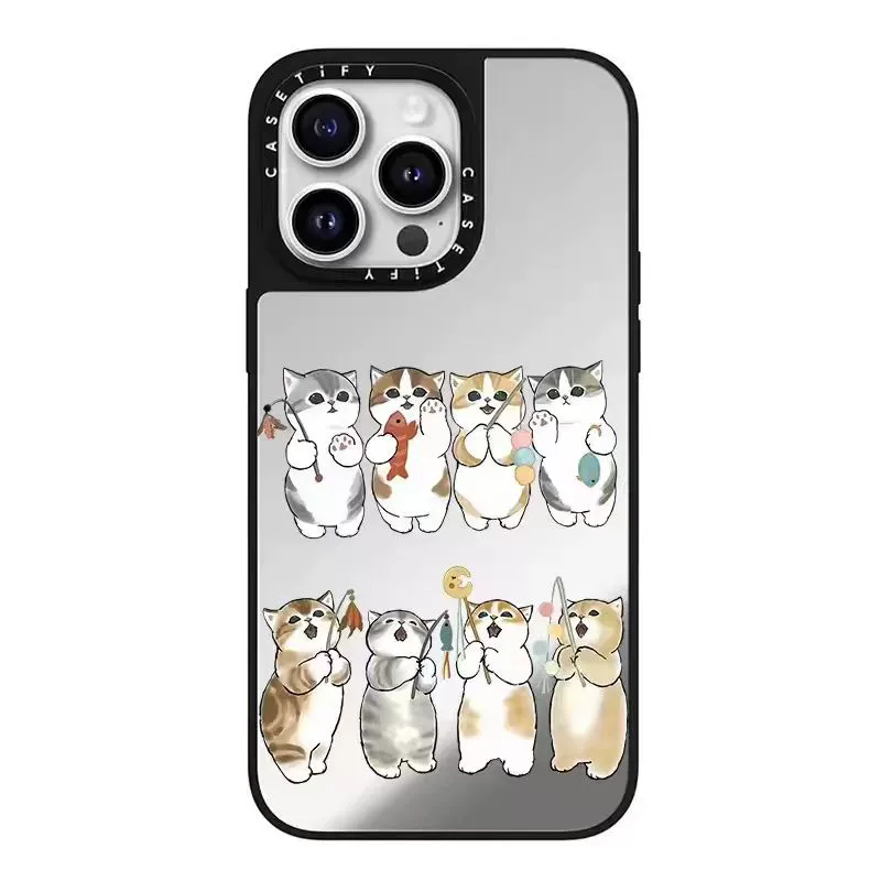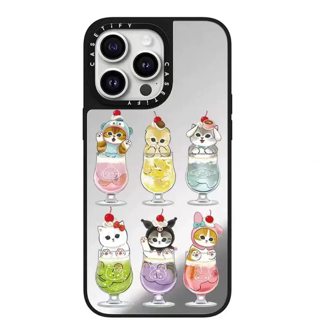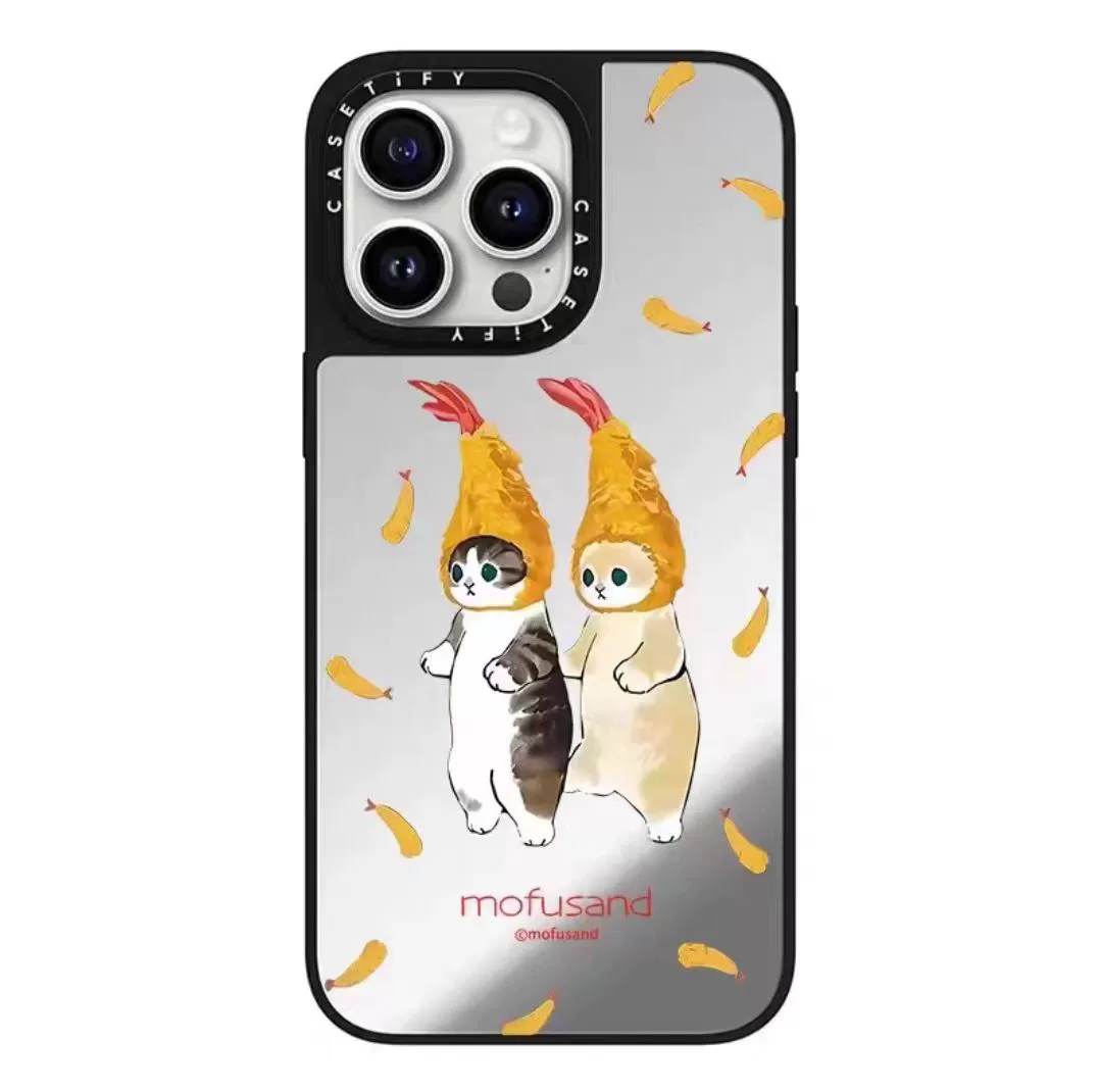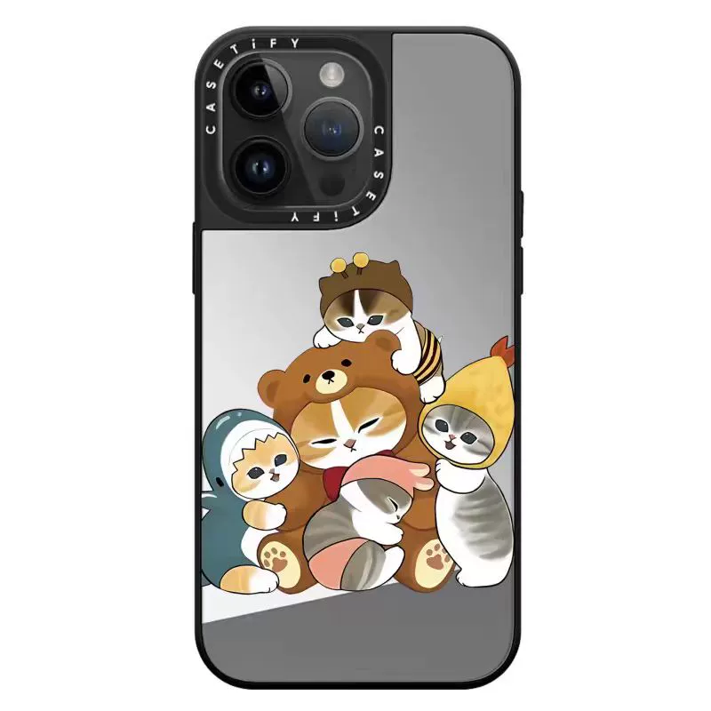 CASETi mirror cute shark cat sticker 14Pro suitable for iPhone15ProMax Apple 13Pro internet celebrity cartoon 11 joint mobile phone case 12 anti-fall xsmax hard 78p