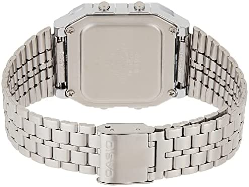 The watch has 5 daily alarms or one-time alarms, an hourly time signal, and a full auto-calendar up to the year 2099. It also has a 12/24-hour format and a button operation tone on/off feature.