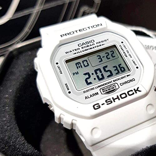 Introducing the Casio G-Shock Mens Quartz Watch, Digital Display and Resin Strap-DW-5600MW-7DR, the perfect combination of style and functionality. This watch is designed to withstand the toughest of conditions, making it the ideal accessory for the modern man on the go. The digital display provides clear and accurate timekeeping, while the resin strap ensures a comfortable fit for all-day wear. The watch is water-resistant up to 200 meters, making it suitable for swimming and other water activities. The sleek white design with black accents adds a touch of sophistication to any outfit, making it a versatile accessory for both casual and formal occasions. With its durable construction and reliable performance, the Casio G-Shock Mens Quartz Watch is a must-have for any man who values style and functionality.