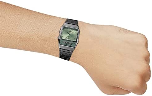 Introducing the Casio Watch Vintage IP Grey Dual Time Steel Flat Link AQ-800ECGG-3A, a stylish and functional timepiece that is perfect for the modern man or woman. This watch features a sleek and durable stainless steel flat link band with an IP grey finish that is sure to catch the eye. The dual time function allows you to keep track of two time zones at once, making it ideal for frequent travelers or those with loved ones in different parts of the world. The vintage-inspired design adds a touch of nostalgia to your look, while the modern technology ensures accurate timekeeping. With a water resistance of up to 100 meters, this watch is perfect for everyday wear and can withstand splashes, rain, and even swimming. Whether you’re dressing up for a special occasion or running errands on the weekend, the Casio Watch Vintage IP Grey Dual Time Steel Flat Link AQ-800ECGG-3A is the perfect accessory to complete your look.